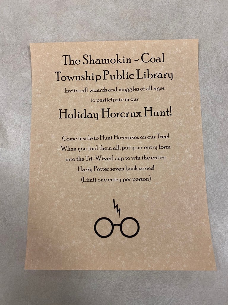 Visit the Library to see our amazing Harry Potter themed holiday tree and enter the “Find the Horcrux” Contest, and look for a Golden Snitch (hint . . . they’re yummy)!