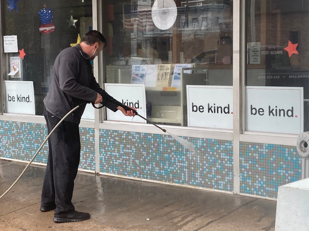 We send our sincerest thanks to a group volunteers who thoroughly power washed the sidewalks in front of the library, the building’s façade, and around the side of the library’s exterior. Volunteers included Rob Oshinskie, Bobby Malick, Blake Zalar, and Joe Shaffer. Thank you to all those who donated their time, equipment, and expertise today in order to beautify our library as well as several other locations throughout the community!