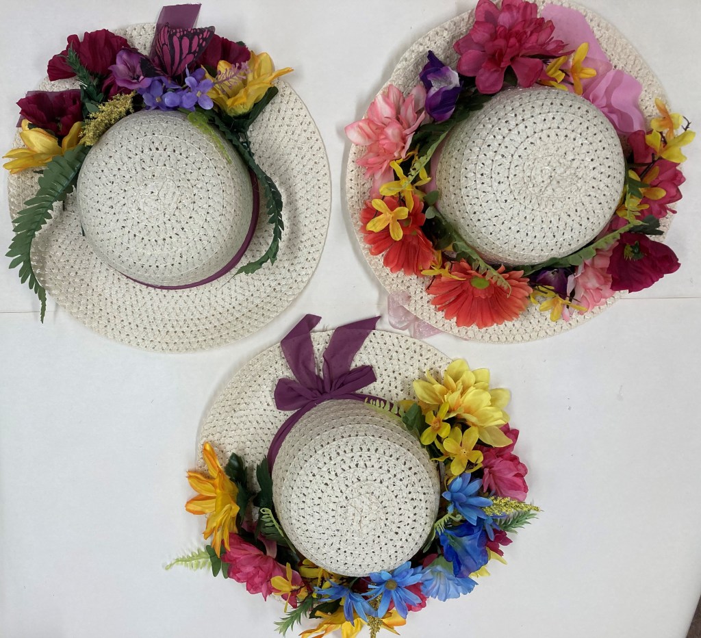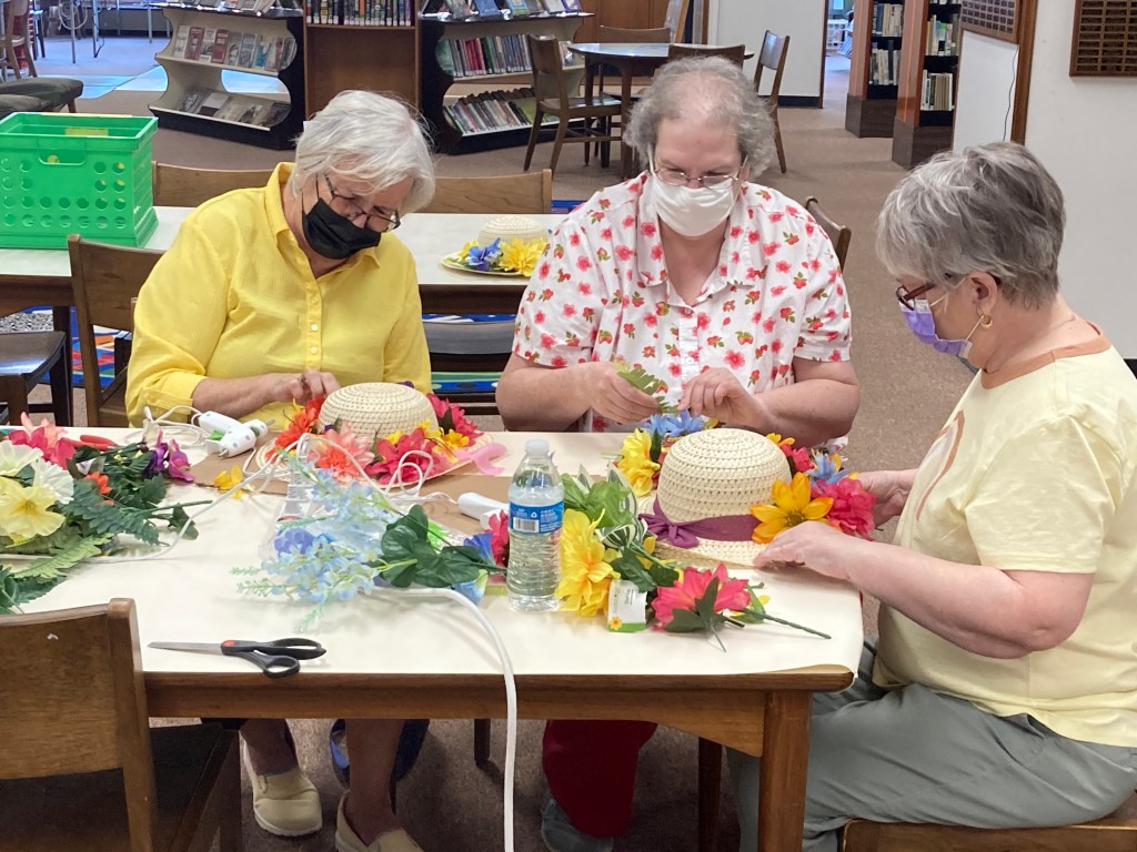 As things begin to ease up all across the board, be sure to stay up to date on what’s happening at the library! Preschool Storytime & Movement has returned and is held on Mondays at 10 AM. Also, look out for more adult programming events as we enter the summer season. This past week we held our first adult program, the Floral Hat Workshop and some pictures of the day’s lovely creations are included below. Finally, be on the lookout for information concerning this year’s Summer Reading Program “Tails and Tales” which will offer 6 weeks of events that will focus on animals along with a smattering of other topics as well! Stay well, stay safe, and be sure to stop by!