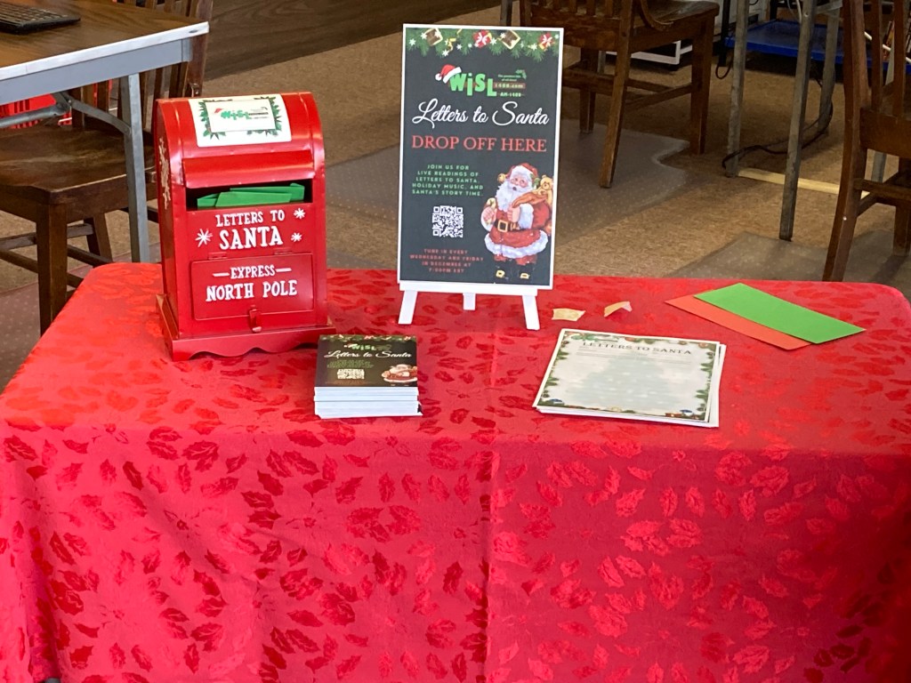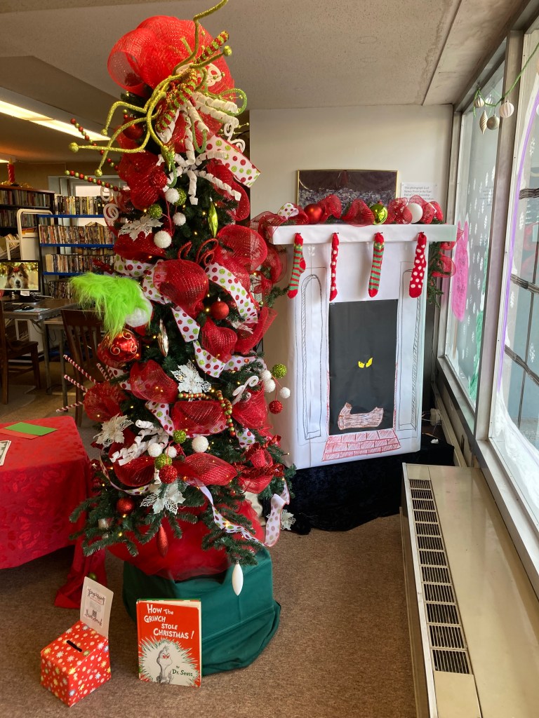 We would like to extend our sincere thanks to Lisa Eccker for providing the library with a magnificent “How the Grinch Stole Christmas” themed tree. If you adore this tree and its corresponding decorations as much as we do here at the library, we urge you to stop by and make a donation to help us win the annual SABER Tree Contest. Additionally, the library is a designated drop off location for WISL’s “Letters to Santa” initiative so be sure to get your letters all filled out and dropped off at the library!