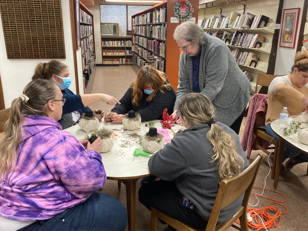 We hope that everyone who attended today’s crafting class at the library had a wonderful time and headed home with a cute snowman just in time for the holiday and winter season!
