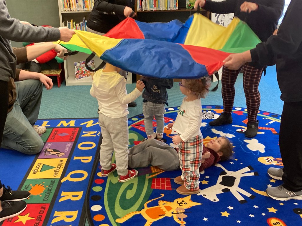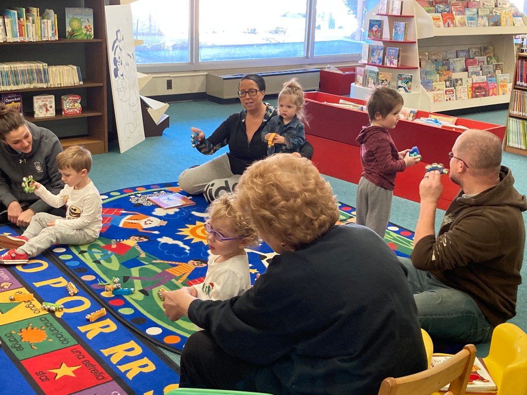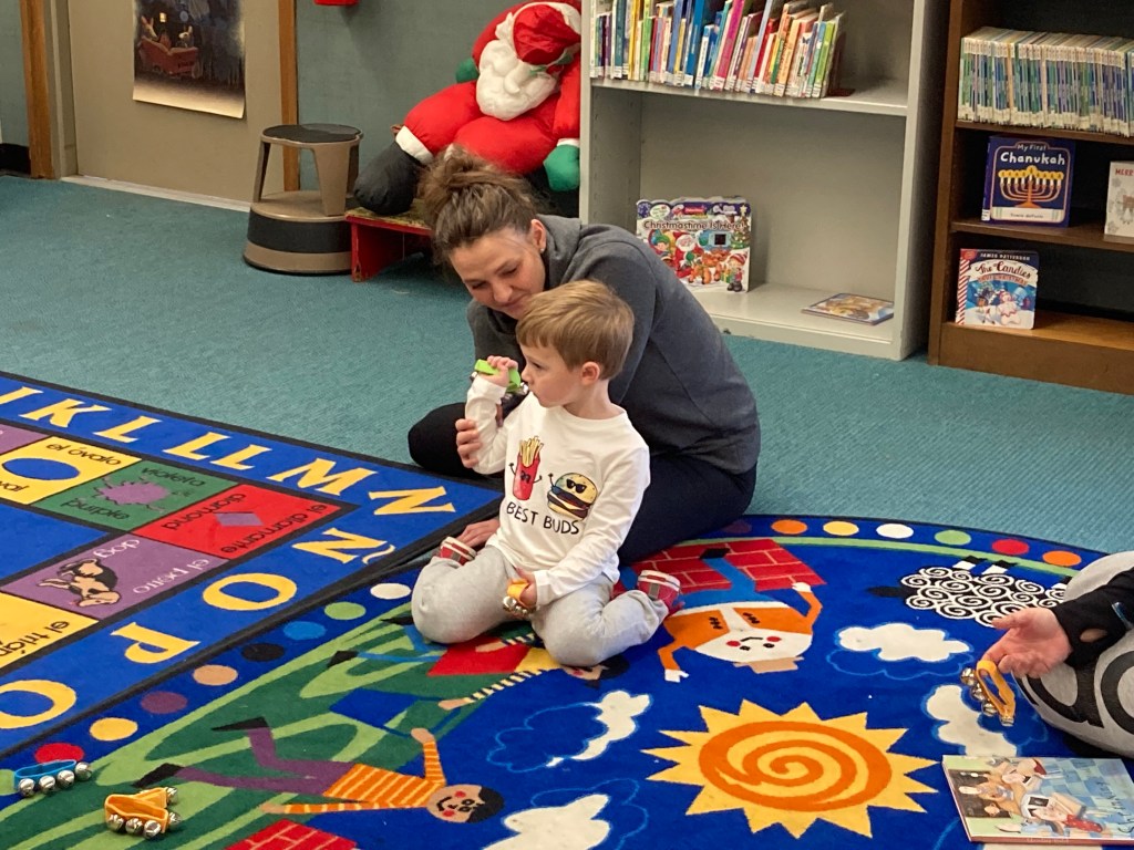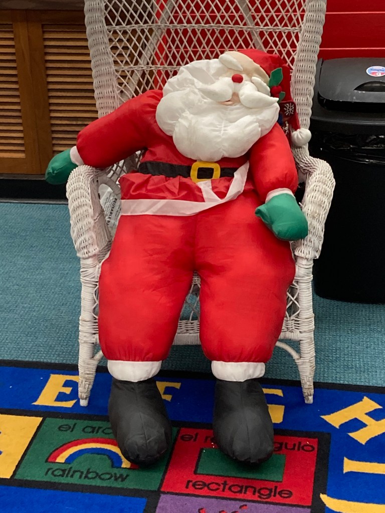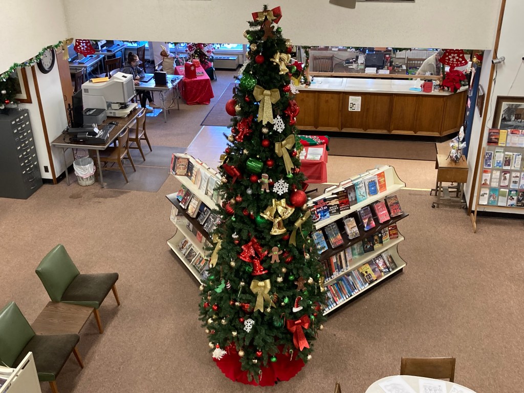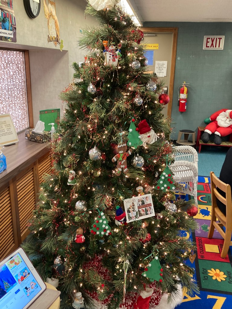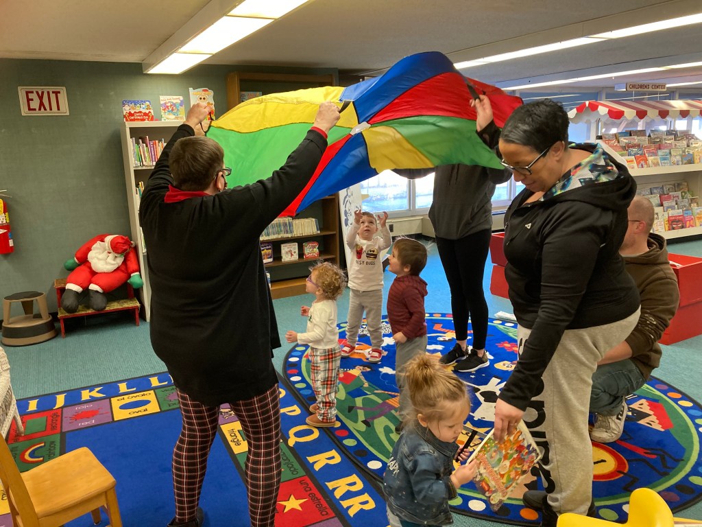 Check out our festive holiday decorations placed all throughout the library! We would also like to thank Lisa Eccker for her lovely paintings in the front windows that will undoubtedly spread cheer to all those who pass by. Also included here are some snapshots of our latest Preschool Storytime & Movement program where we read a book about snowmen, sang songs about the jingling bells on Santa’s sleigh, and even crafted some friendly snowmen for everyone to take home!