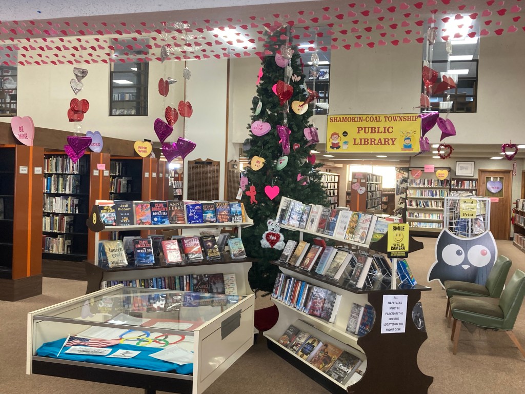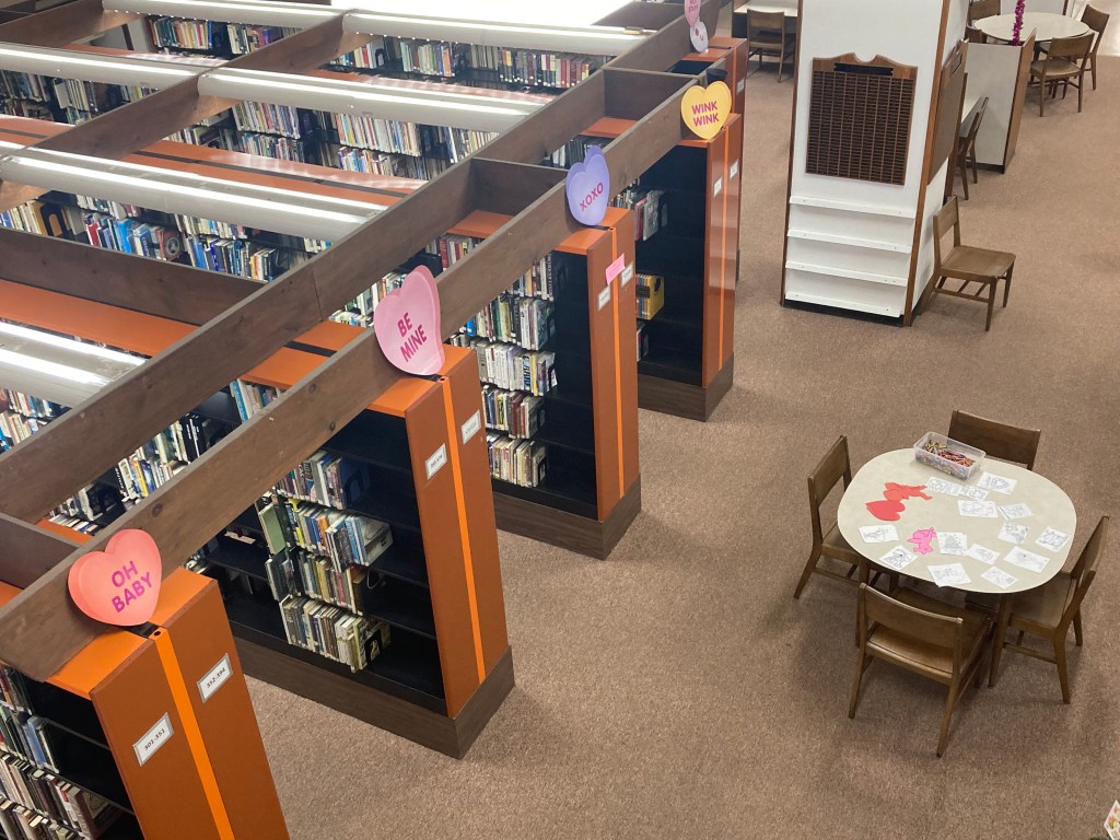 Valentine’s Day is right around the corner! There’s still time, however, to visit the library and decorate an ornament for our Valentine’s Day tree. All patrons are welcome to contribute to the tree in the spirit of community and togetherness. When visiting the library for an event or just to browse the shelves, also take notice of our festive Valentine’s Day décor throughout the library!