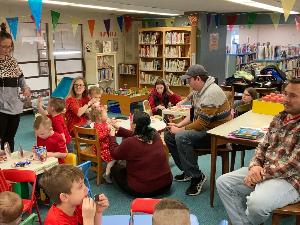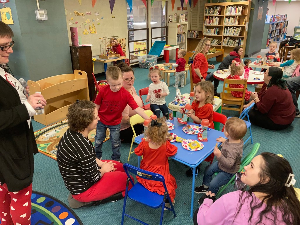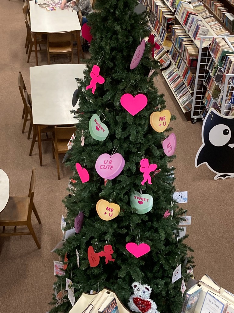 We had quite a festive Valentine’s Day party this morning today at the library! Lots of sweet treats for everyone to take home as well as a craft. Today is your last chance to come by and see our Valentine’s Day holiday tree before it transforms in time for St. Patrick’s Day!