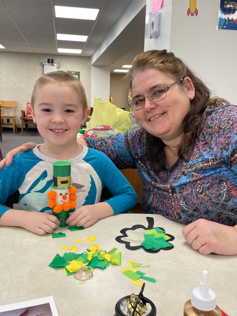 We hope everyone that attended the children’s craft yesterday at the library had a splendid time creating snappily dressed leprechauns and eye-catching four-leaf clover suncatchers that are sure to light up a room over the next several weeks just in time for St. Patrick’s Day! Special thanks to NCCAH members Jeanne Shaffer and Joyce Sickora for helping us prepare the crafting materials and being on hand to guide the children through both projects. As always, keep an eye out for future crafting events for both children and adults at your local library!