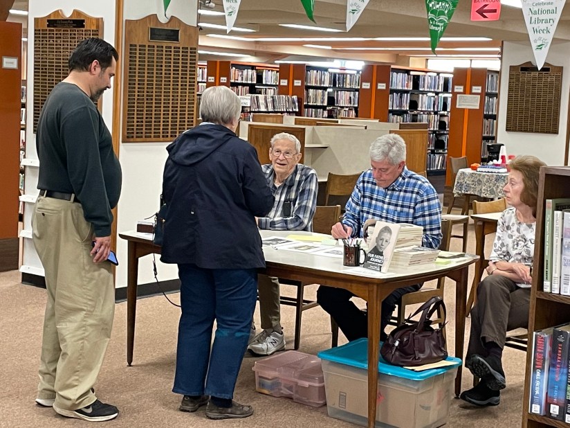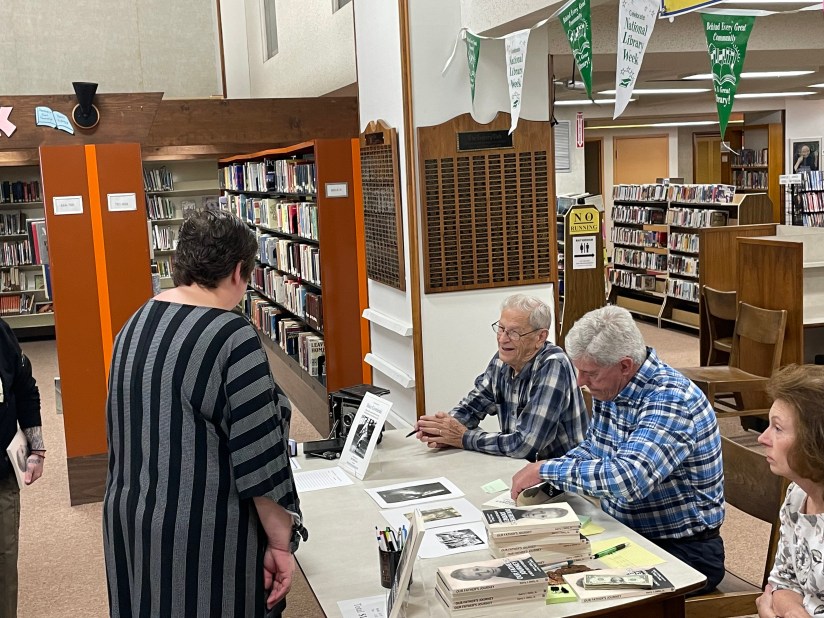 We’d like to extend our sincere thanks to author Harry Deitz, Jr. and his father Harry Deitz, Sr. for visiting our library this morning. The book signing for the author’s “Our Father’s Journey: A Path Out of Poverty” was a lovely event that was enthusiastically attended by folks from all over the community and surrounding areas. If you’d like to snag a copy of the book, the library still has a few copies available for purchase!