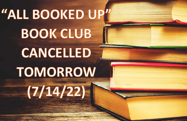 The “All Booked Up” book club meeting that was scheduled for 2 PM tomorrow (7/14) at the library has been cancelled. Keep an eye out for the next meeting date!