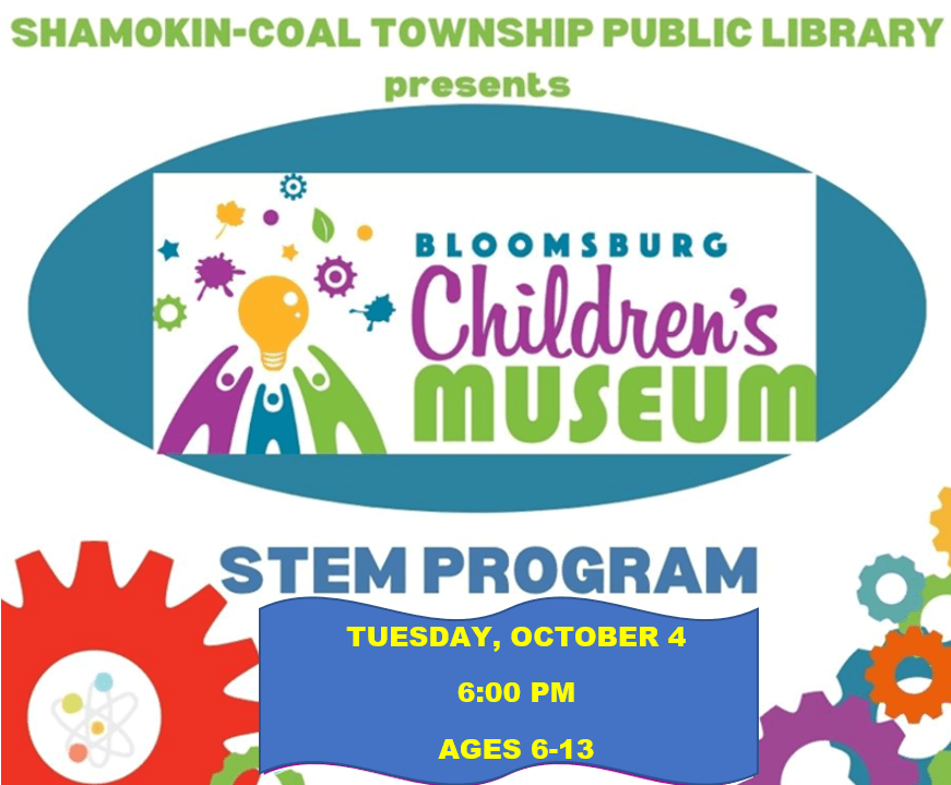 In addition to the “Intro to Laser Cutting and Engraving” class for students scheduled for Tuesday (9/27) of next week, the library will also be hosting Bloomsburg Children’s Museum again the very next week on Tuesday, October 4th at 6 PM.