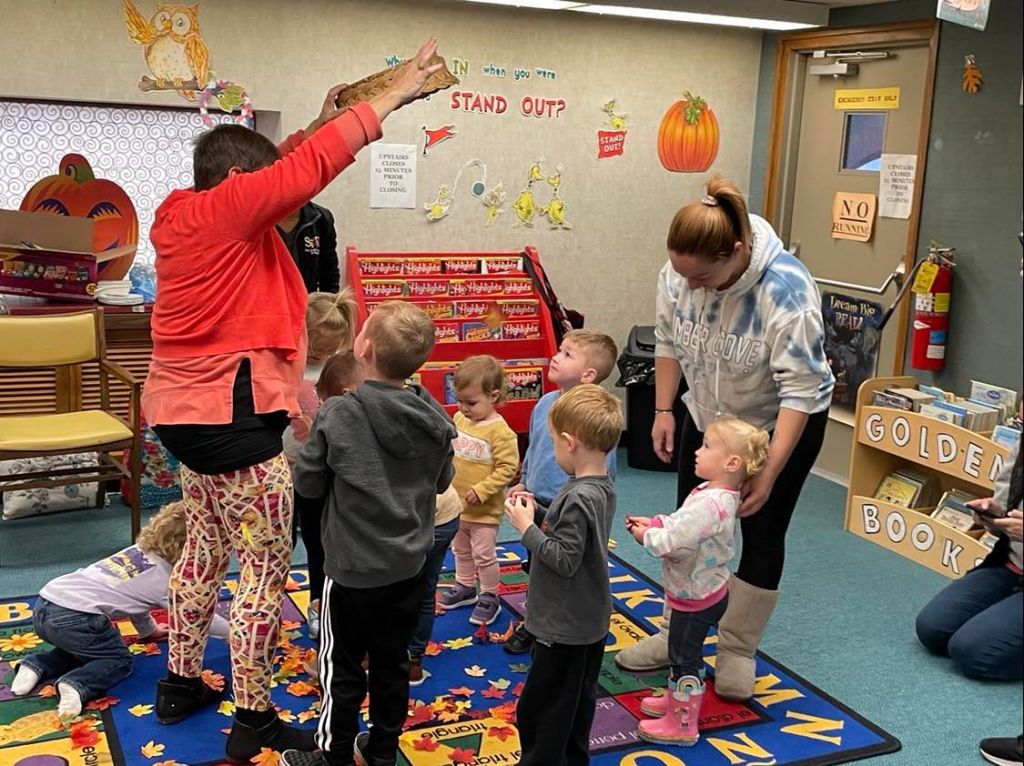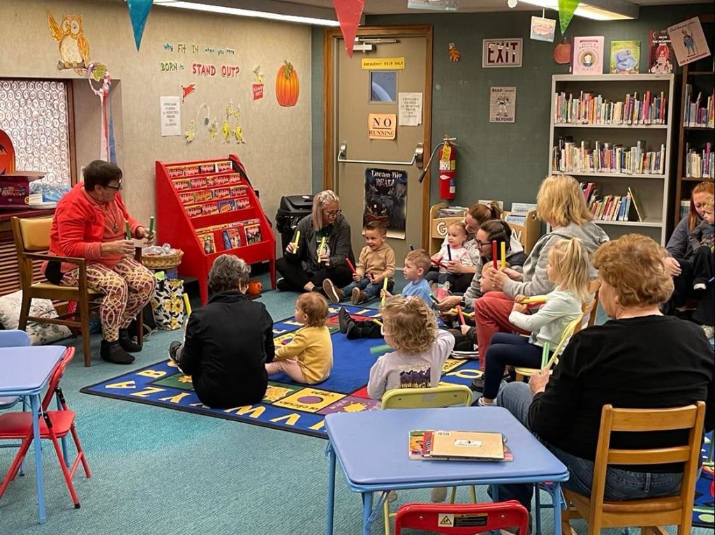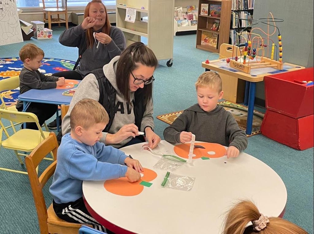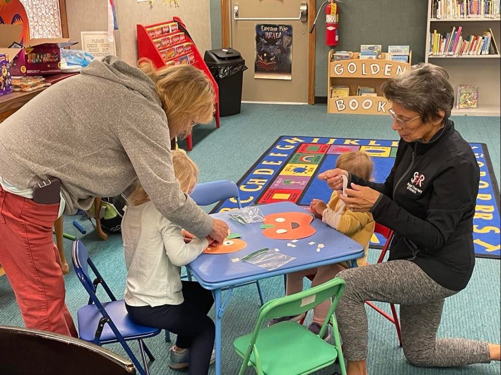We had quite a ball at Preschool Storytime & Movement this morning reading “The Littlest Pumpkin”, singing our songs, and later making our very own paper jack-o-lanterns to take home! Preschool Storytime & Movement is held at the library every Monday at 10 AM.