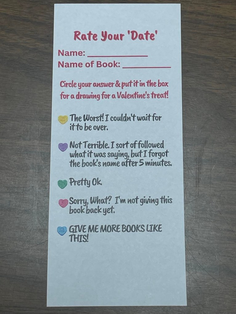 Once you’ve read the book, be sure to fill out the “Rate Your Date” bookmark inside and return it for a chance to win a special Valentine’s Day prize!