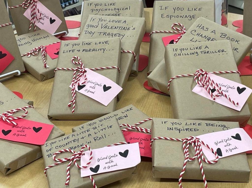 To kick off the month of February, come down to the library and pick out your “Blind Date with a Book” selection from our new display area! Each book has a hint concerning what it’s about written on the outside so it’s up to you to decide which one to take.