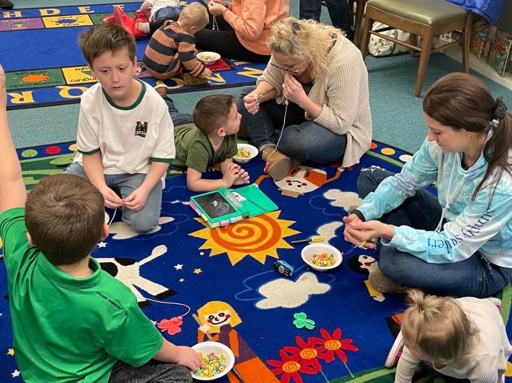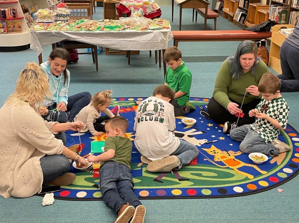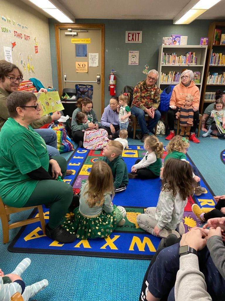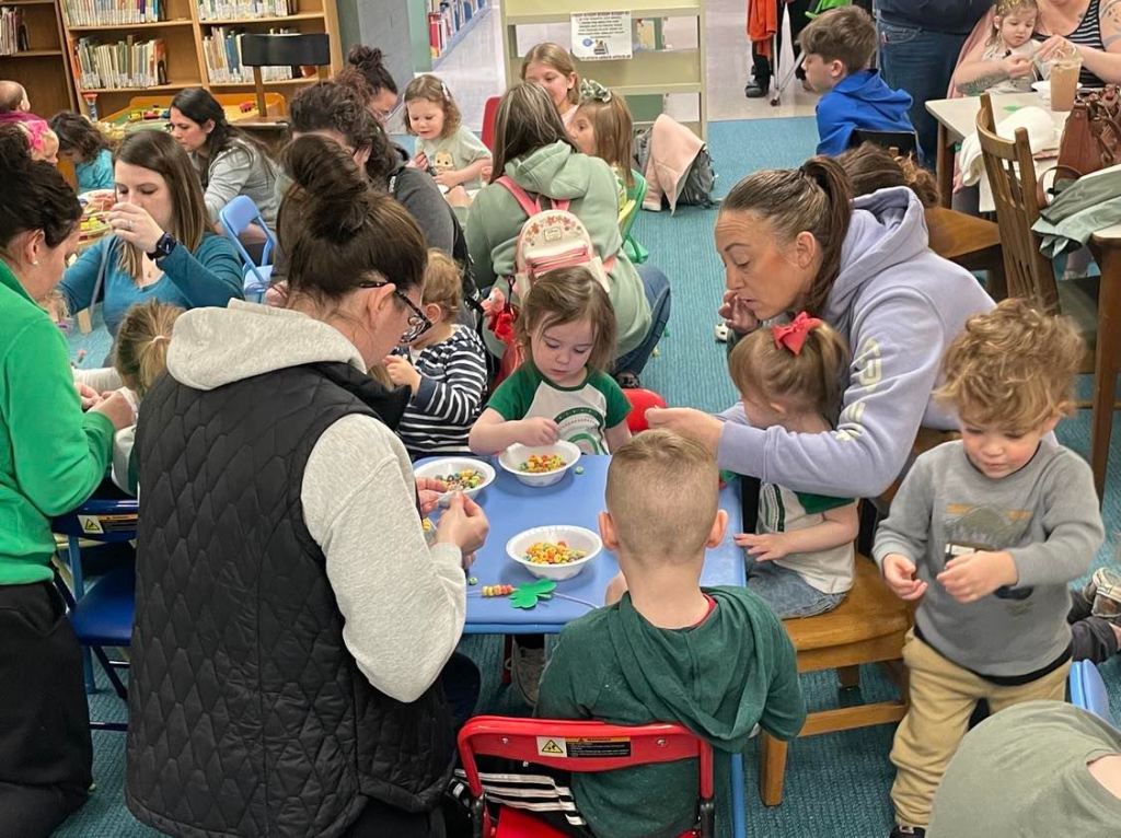 What a morning we had at Preschool Storytime & Movement! This morning was our St. Patrick’s Day party and we feel quite lucky indeed for such a wonderful turnout. We listened to a leprechaun story, sang our songs, made (edible) shamrock necklaces, and had tons of snack options to choose from. Thank you to all the parents and grandparents that brought goodies for everyone to share!