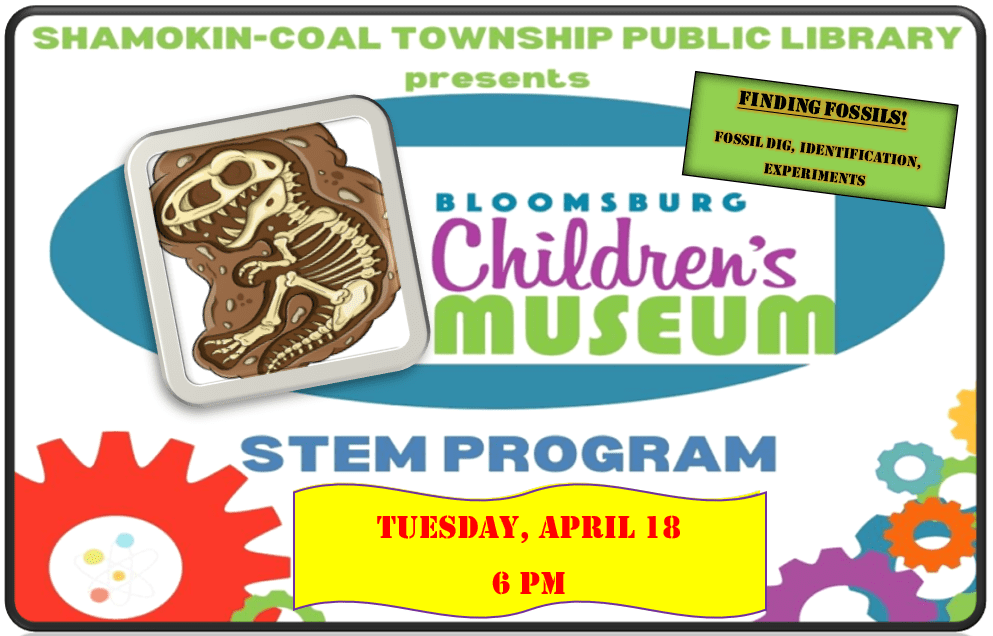 **REMINDER** Join us at the library Tuesday, April 18 at 6 PM for our monthly STEM program! This month’s program is all about fossils, what they are, how they form, how to identify them, and ultimately what they can teach us about the natural world and its rich history.