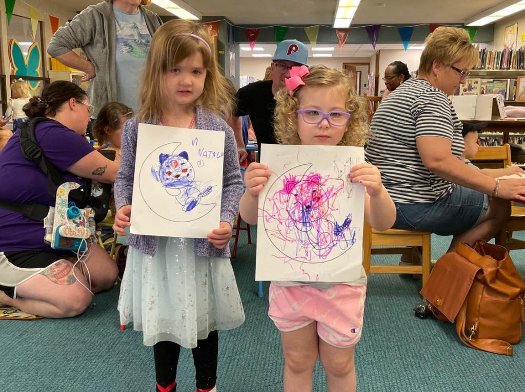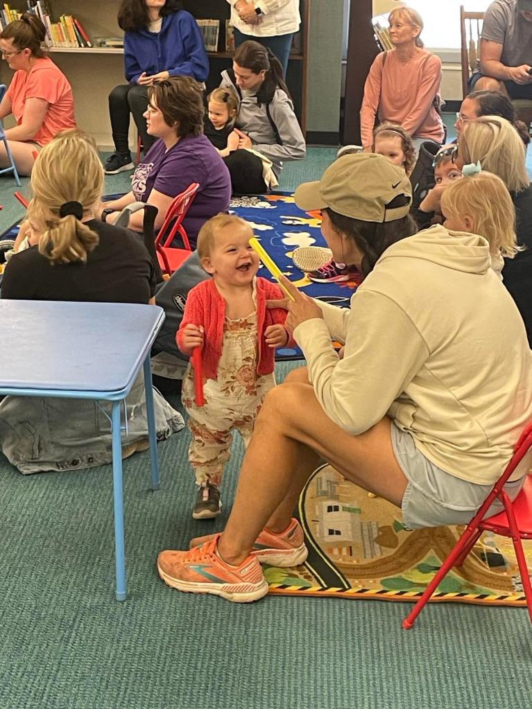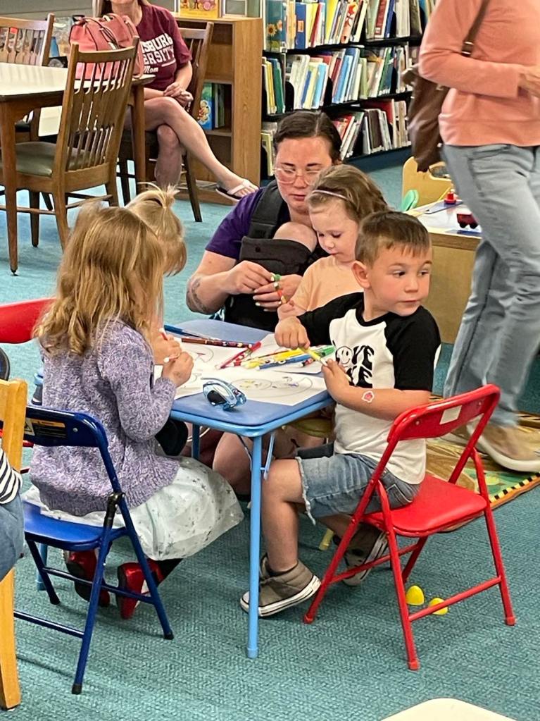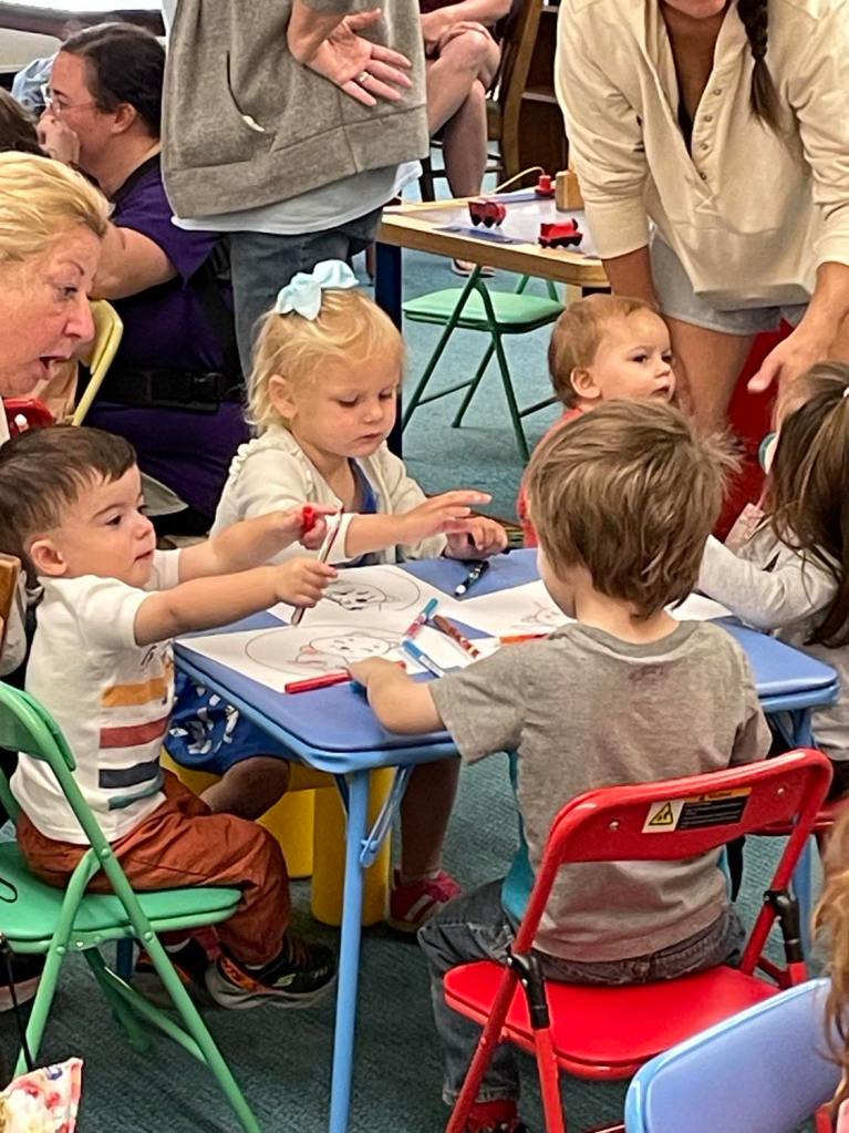 This morning’s story was “Kitten’s First Full Moon” so naturally we colored lots of little kittens after song time. A special thank you once again goes to Rachel Farrow for generously donating a jumbo sized box of scented markers to our library. We will certainly get lots of use out of them!