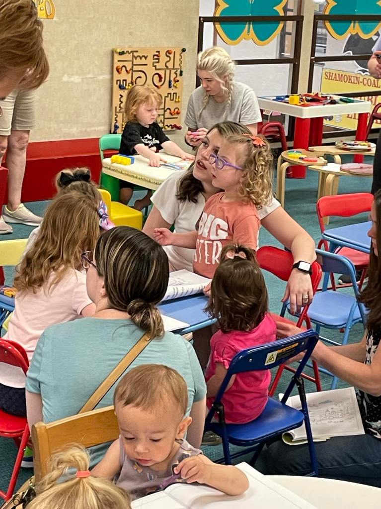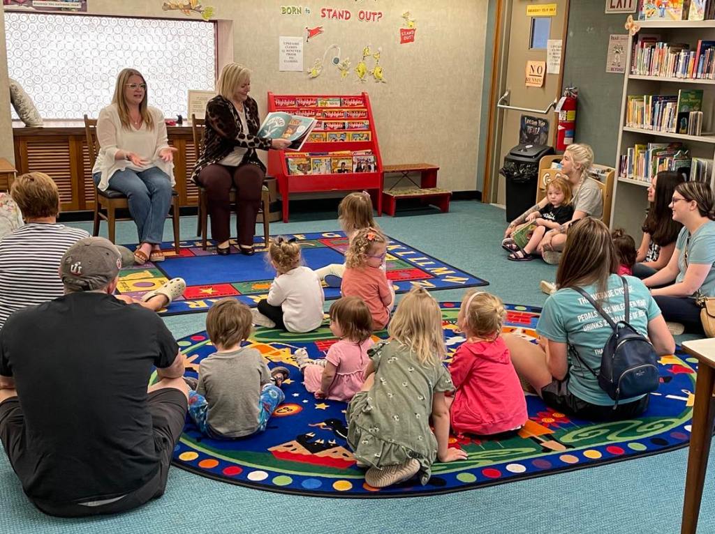 We would like to thank Lorena Kutza and Shayla Nowakoski of Great Dane for volunteering at the library this morning! Lorena and Shayla took on a lead role during our weekly Preschool Storytime & Movement program by reading “Can I Join Your Club?” by John Kelly.