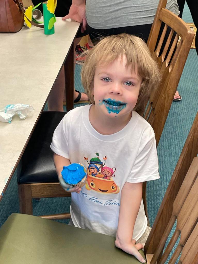 We had quite the full house this morning at Preschool Storytime & Movement! After reading a book about planting flowers, we made our very own flowers out of foam so they won’t need too much water throughout the season. We would like to thank regular Monday morning attendee Rex and his mother Mary for bringing cupcakes for everyone to celebrate his 4th birthday! 🥳🧁🎉
