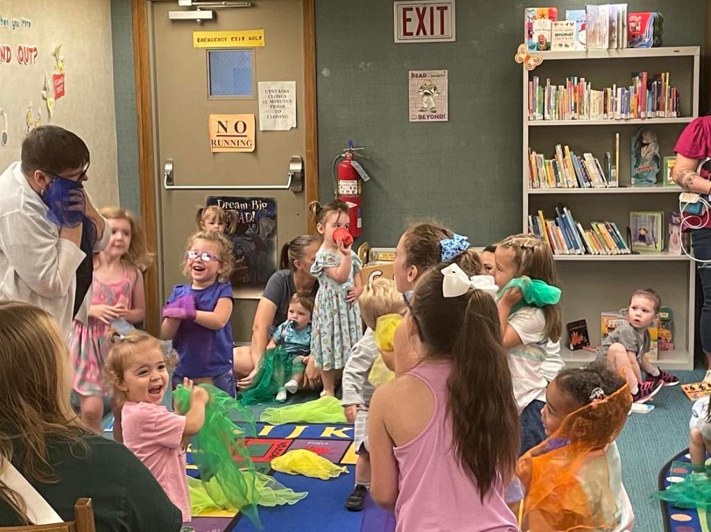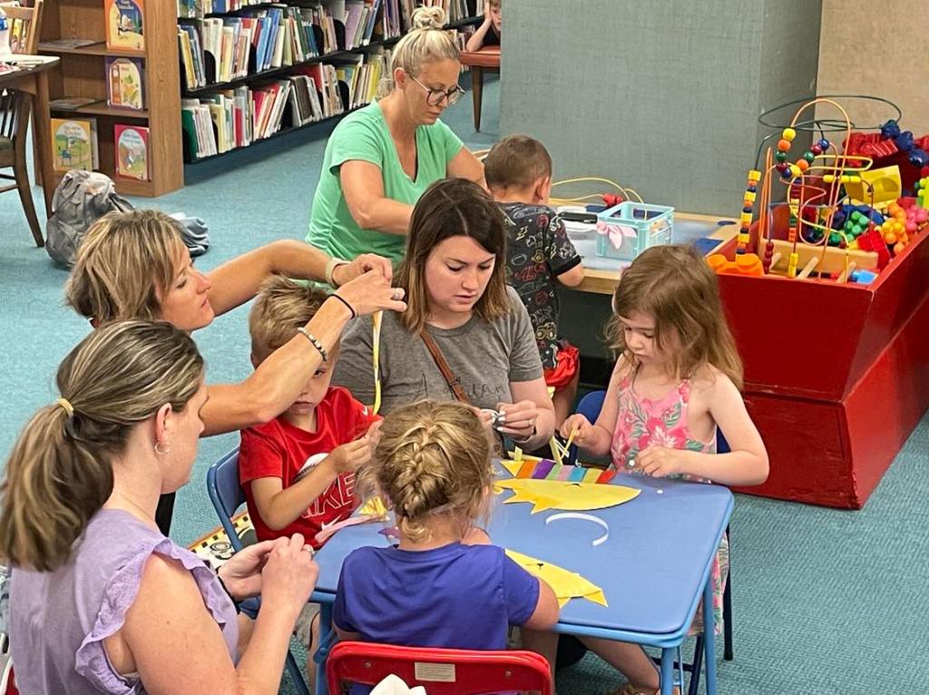 We had lots of fun at Preschool Storytime & Movement this morning! After reading “Chika Chika Boom Boom” and singing our songs, we all worked on some colorful crafts before settling in for snack time.