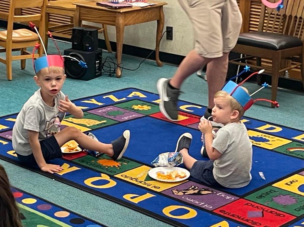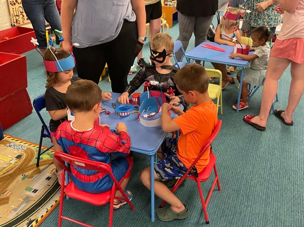 We’re all ready for the holiday here at the library! With our book this morning being “Red, White, and Boom!” and our crafted patriotic hats it looks like we’re all set to go for Independence Day.