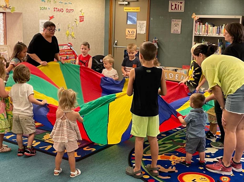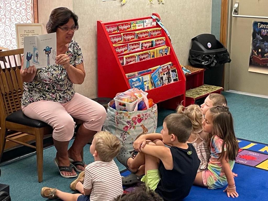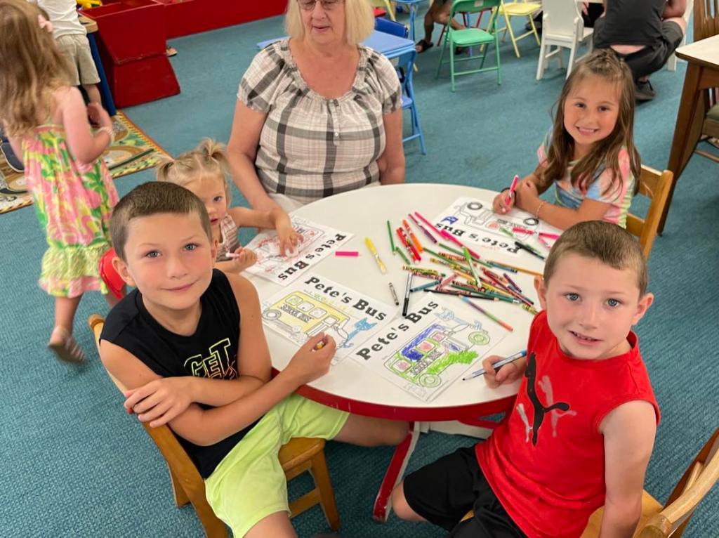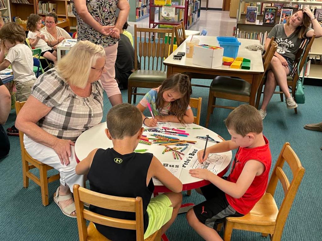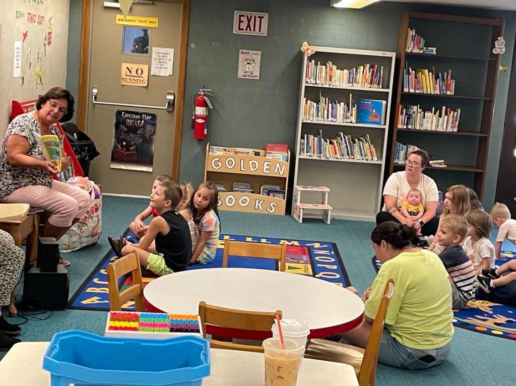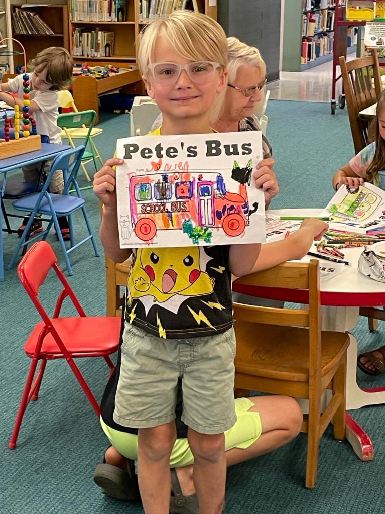 This morning at Preschool Storytime & Movement we read “Pete the Cat: Too Cool for School” since it’s that time of the year again. Library volunteer Chris Backes was our special reader this morning and we’d like to thank her for reading the story and for frequently assisting us with this program week to week!