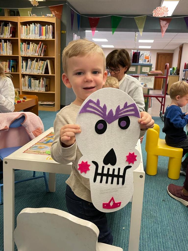 This morning at Preschool Storytime & Movement we read “The Best Halloween Book” which went through the letters of the alphabet and included a Halloween word starting with each letter. We had “C” for cat, “P” for pumpkin, “M” for monster, and many more. Later we crafted some spooky foam cats, pumpkins, and skeletons to decorate with at home!
