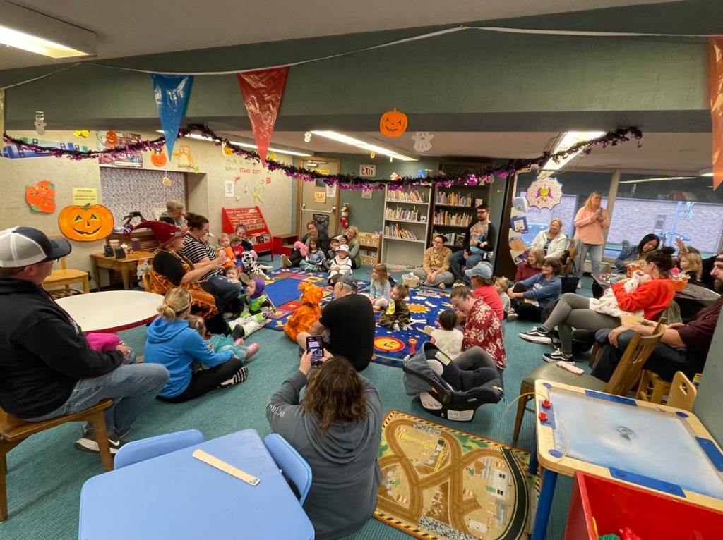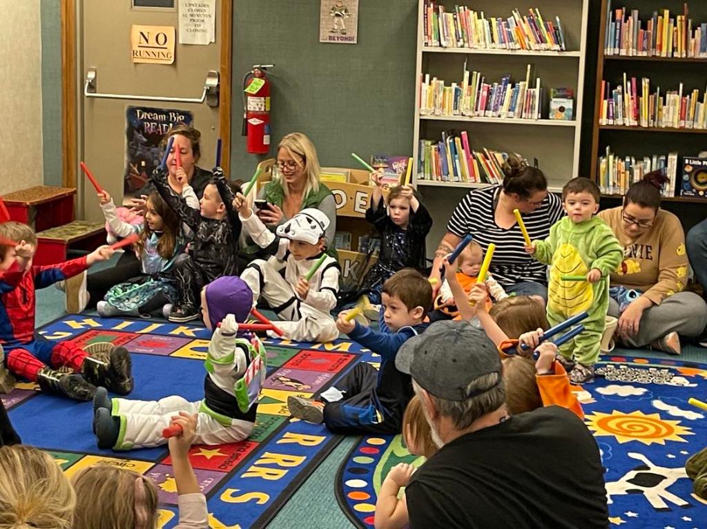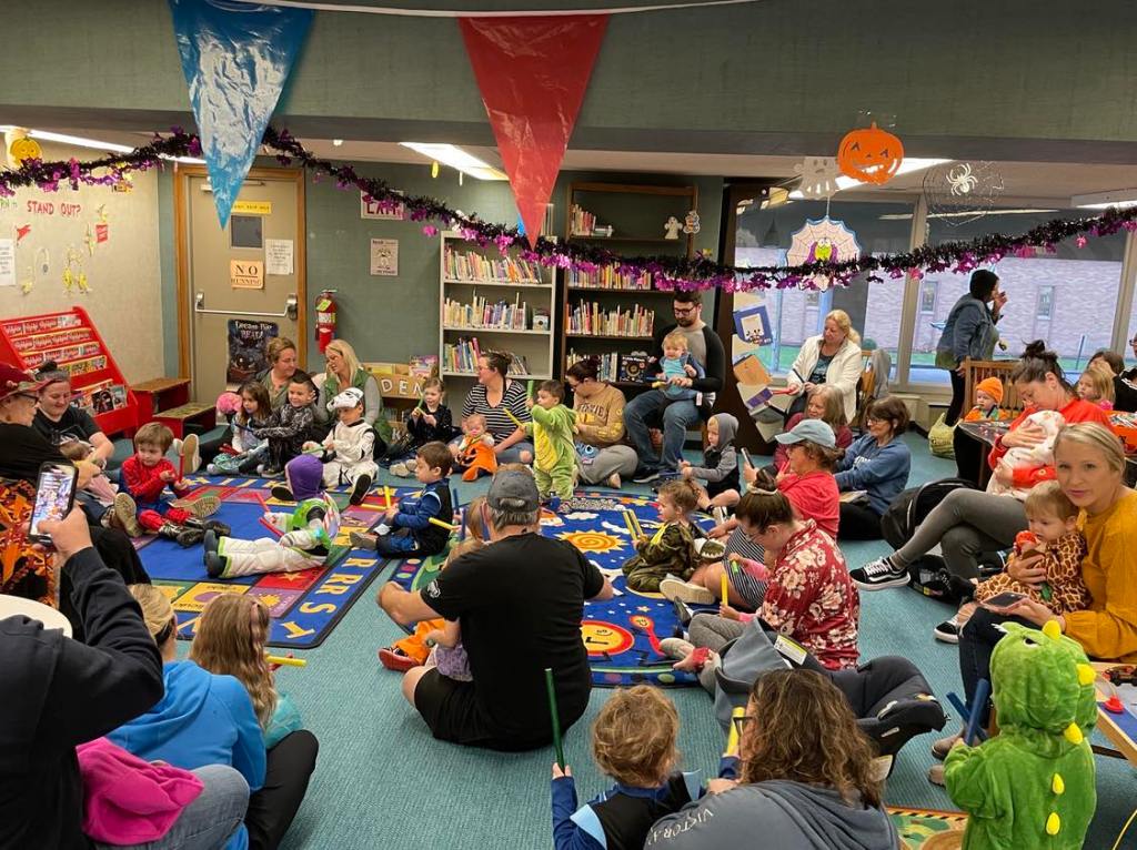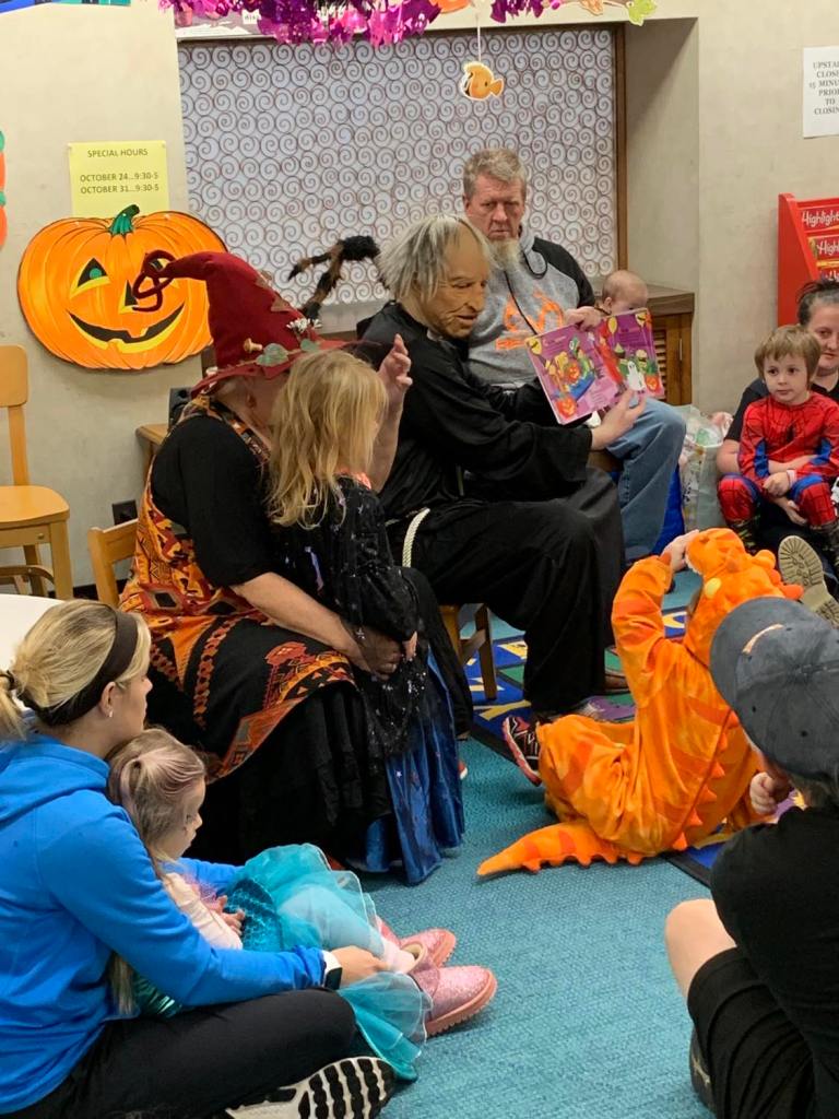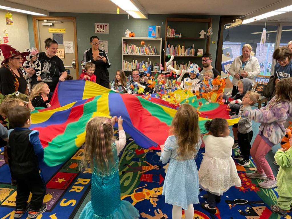 It was prime time for Halloween festivities this morning at the library for the whole Preschool Storytime & Movement crowd. After a quick story all about Halloween and some songs, we jumped right into the candy and all the other assorted goodies!
