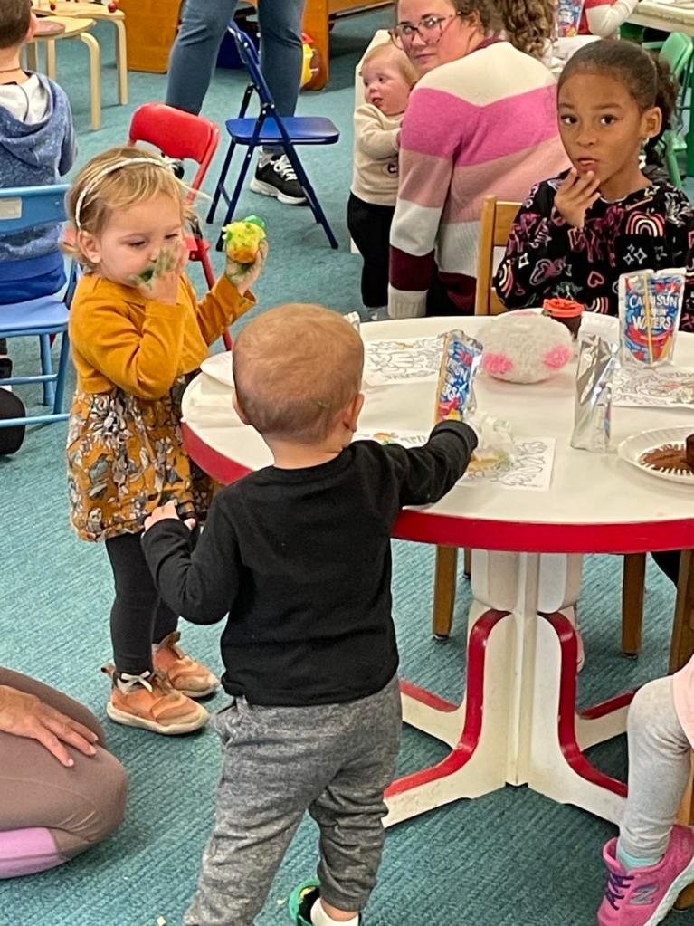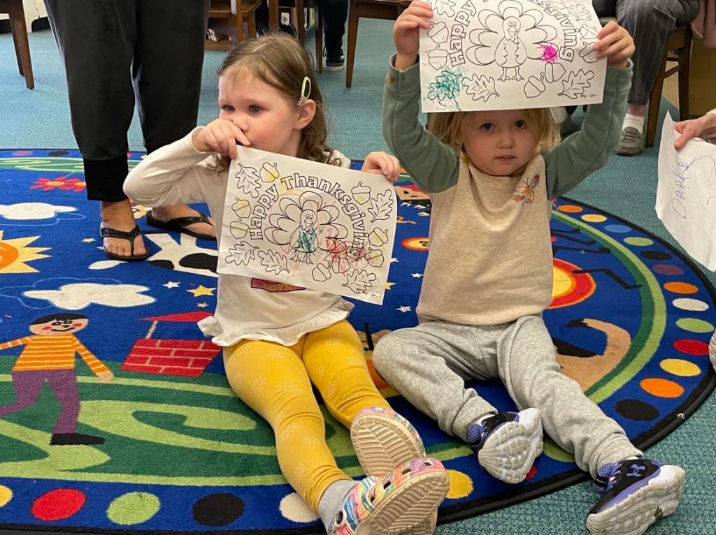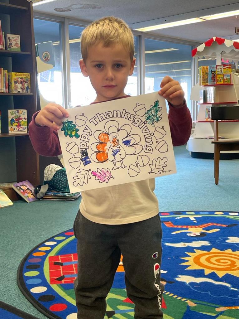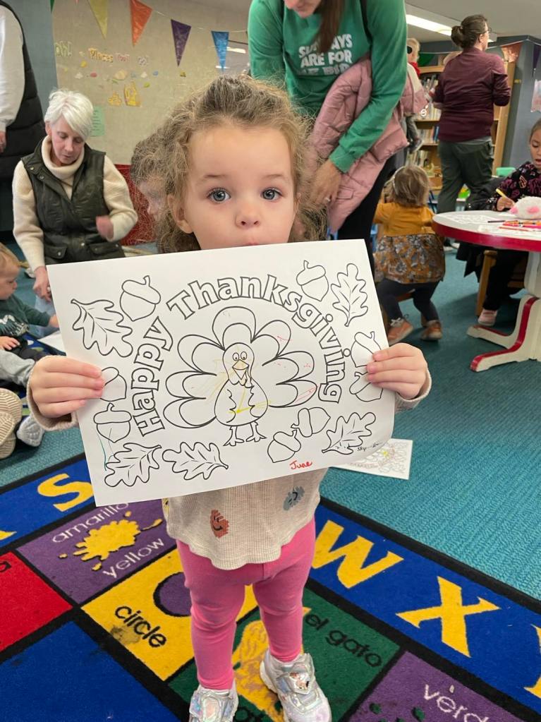 Yesterday morning at Preschool Storytime & Movement we read “Five Flying Turkeys” and later everyone got to color a turkey of their own. We also celebrated a 4th birthday with some tasty cupcakes!