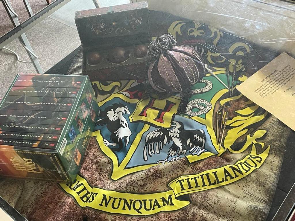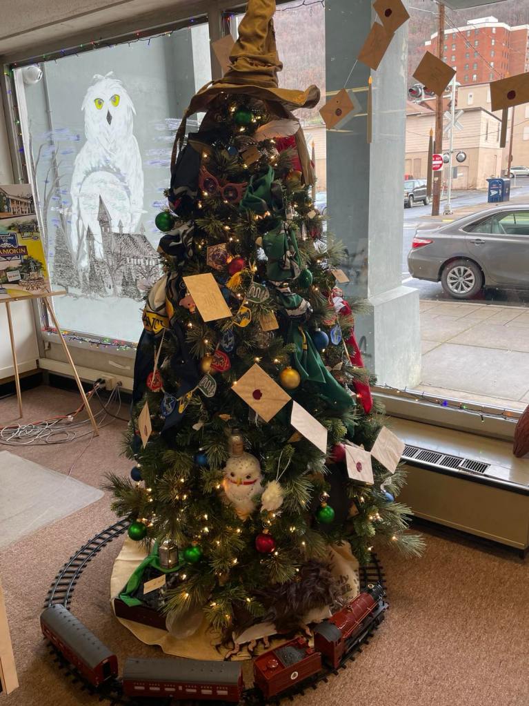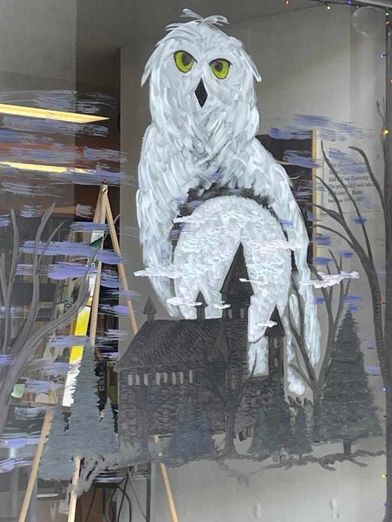 We would thank Lisa Eccker for donating her time and talents and for doing such a wonderful job decorating and supplying handmade ornaments for a Harry Potter themed Christmas tree for the library. In addition to the lovely tree and all its magical trappings, Lisa painted some truly beautiful scenes on the front windows as well!