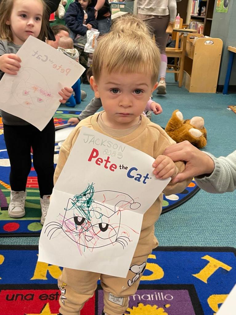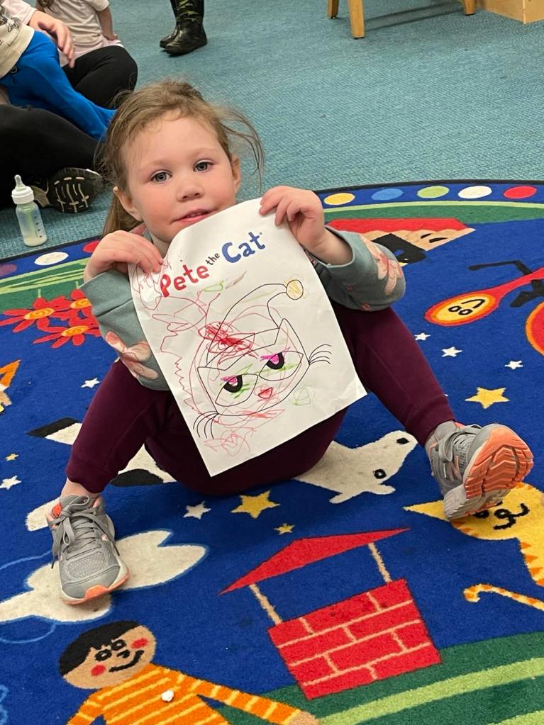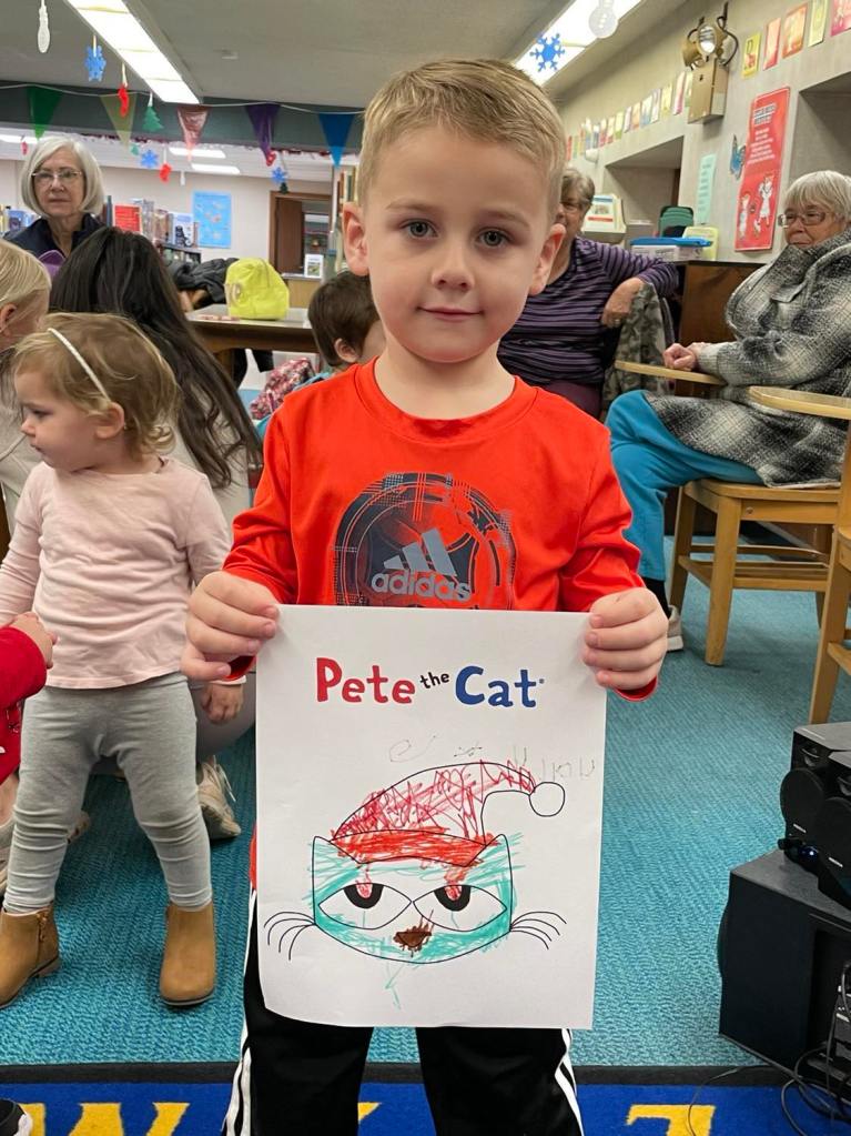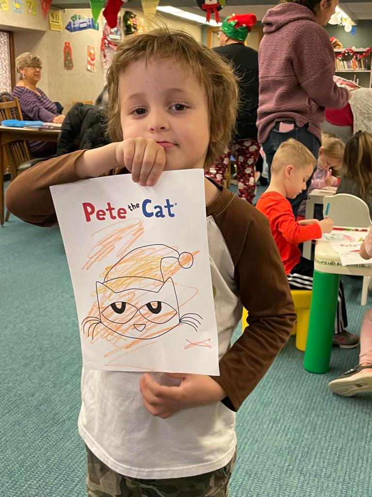 Earlier this week at Preschool Storytime & Movement we read “Pete the Cat Saves Christmas” before singing some songs, doing a bit of coloring, and of course having our snack! Preschool Storytime & Movement will still be held every Monday morning through December with the exception of Christmas.