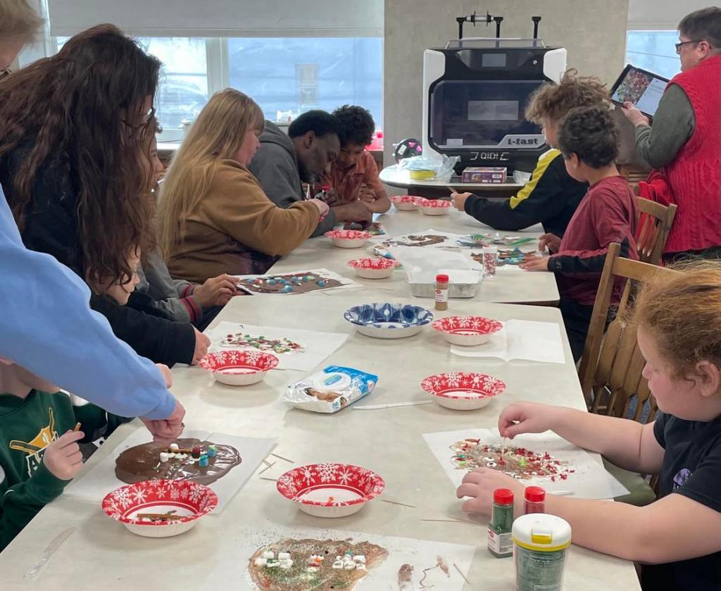This past Saturday at the library we made reindeer bark to munch on as Christmas excitement continues ramping through this week. Designs included lots of snowmen, reindeer, and even a complete gingerbread house!