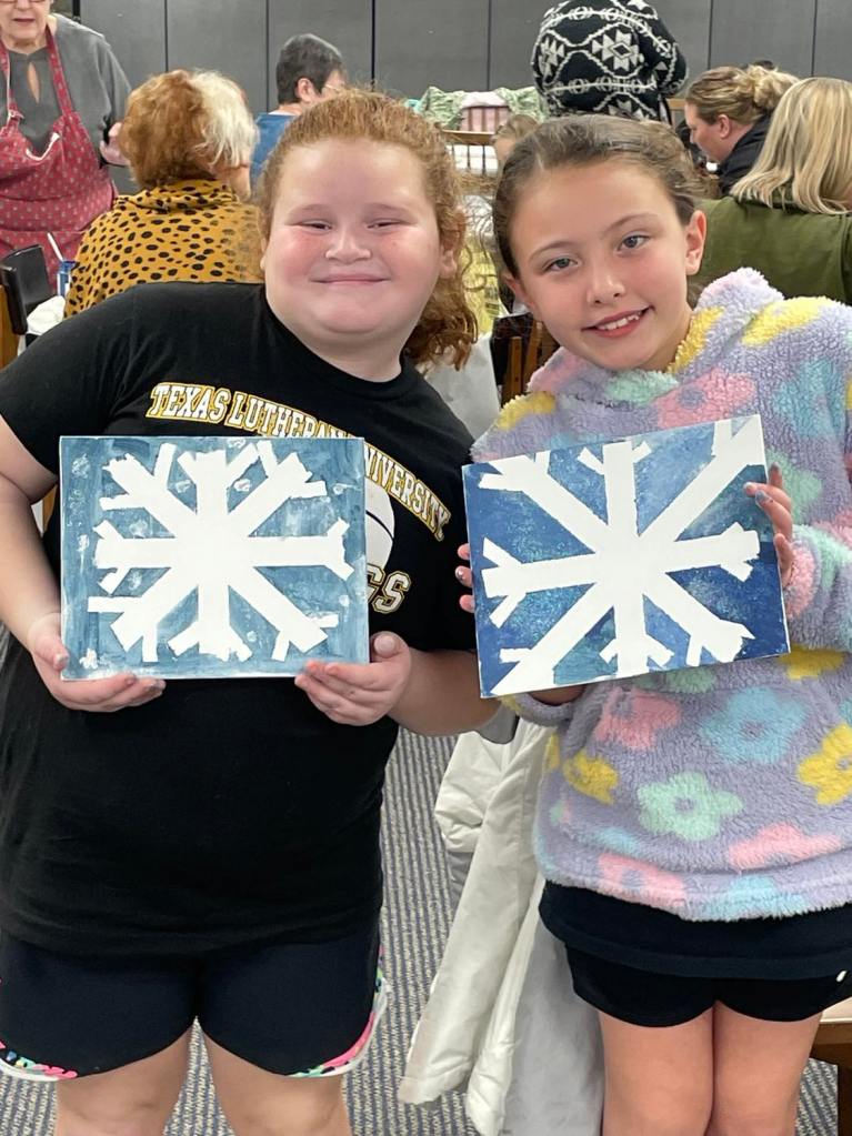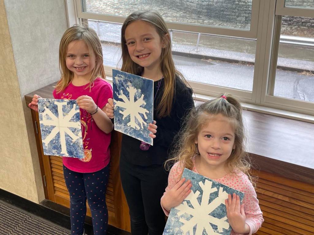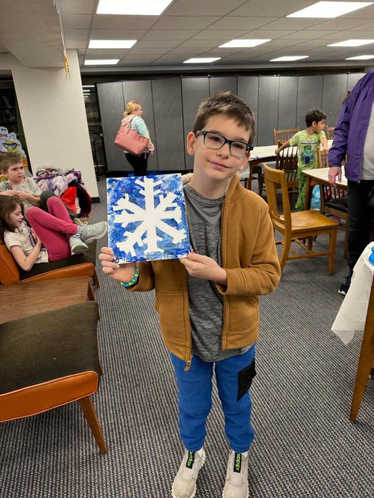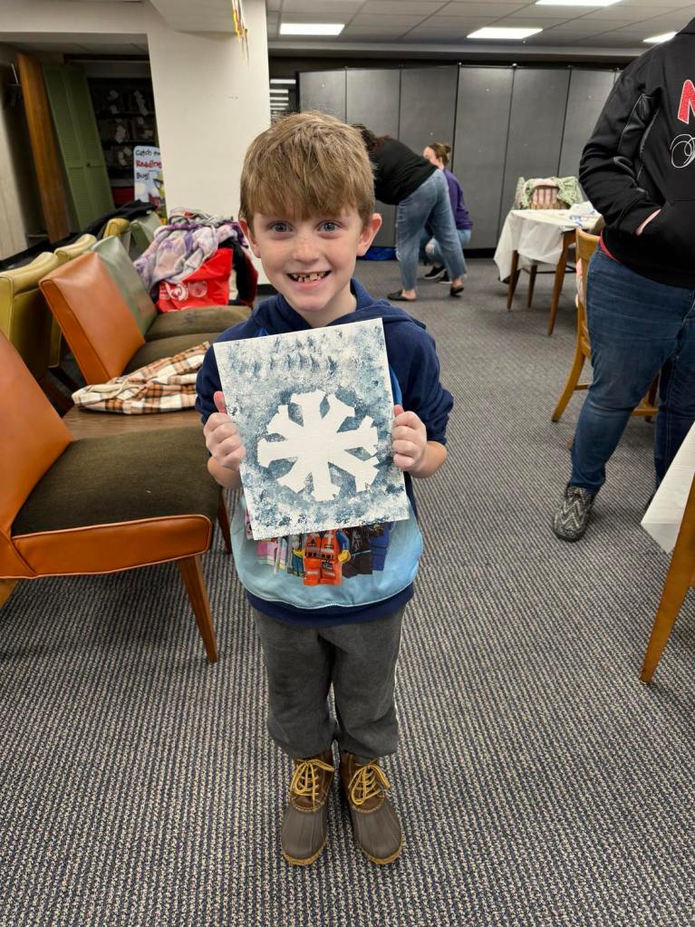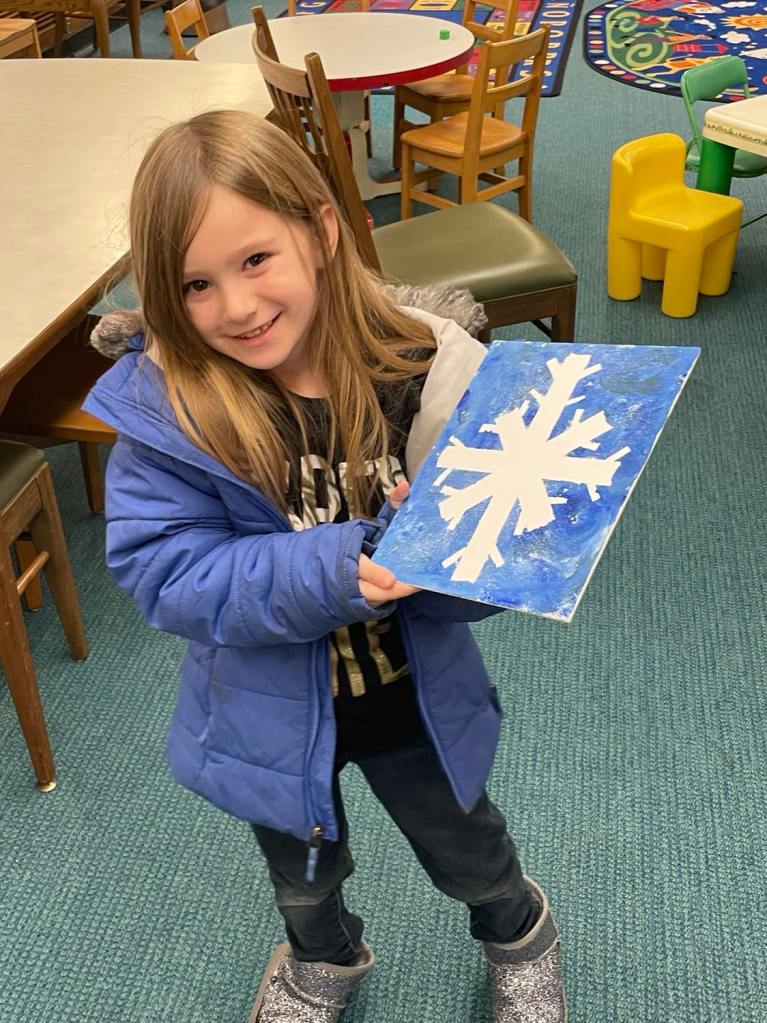 On Saturday at the library we had lots of fun together painting snowflakes on canvas! With varying mixtures of white and blue paint along with a healthy amount of glitter, each snowflake creation took on its own unique shape and design. As always, a very big thank you goes to our partners at the NCCA for helping us make recurring programs like this possible!