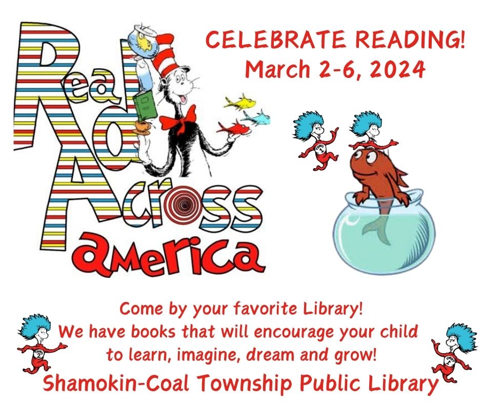 Wishing everyone a happy Read Across America Day and of course a very merry Read Across America Week. Whether you’re someone that visits our library all the time or it’s been years since you last stopped in, drop by Shamokin-Coal Township Public Library and discover everything we have to offer!