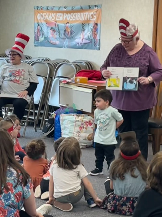 Preschool Storytime & Movement was extra special this morning thanks to a visit from Ms. KymBre and the Dr. Suess themed yoga session she put together for us! Following Suess yoga and a story, we switched gears and began working on a Cat in the Hat craft before eventually enjoying a snack as our time together came to a close. Overall, a great way to celebrate Read Across America Week and also lots of fun!