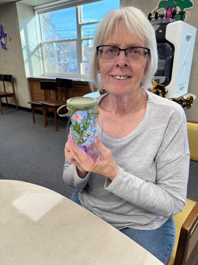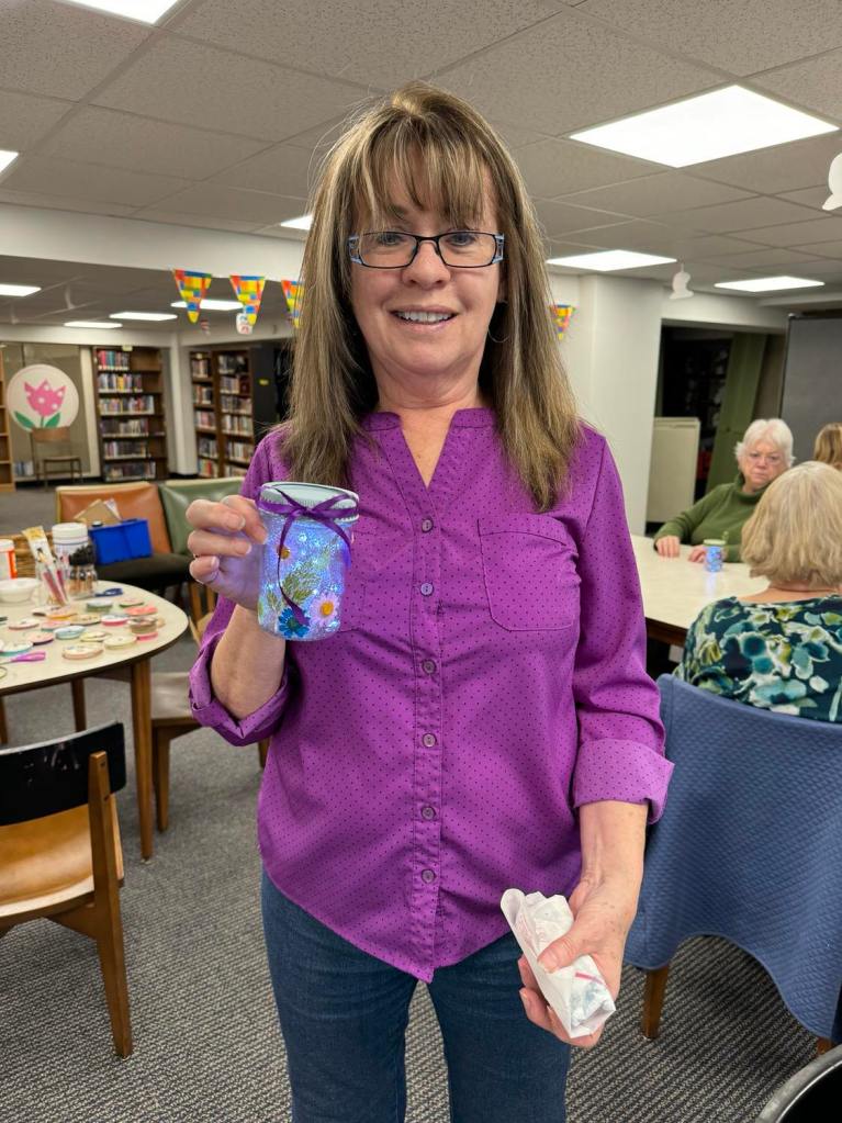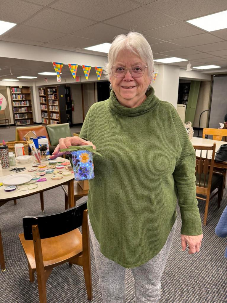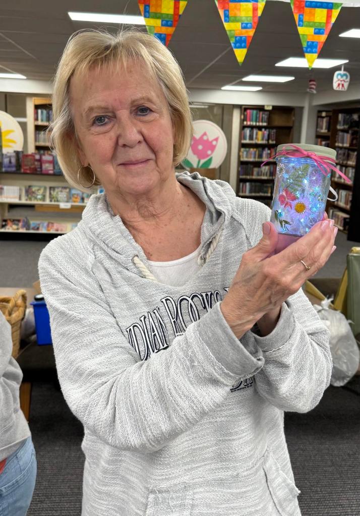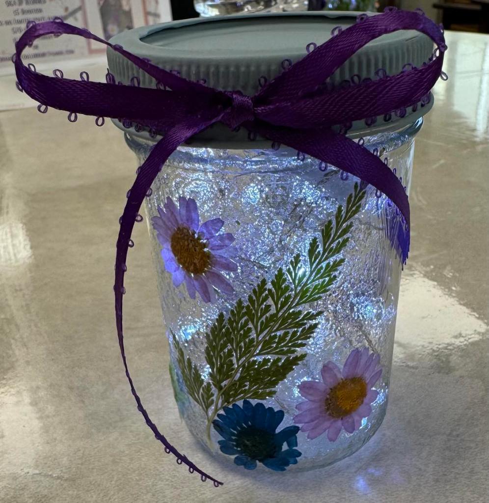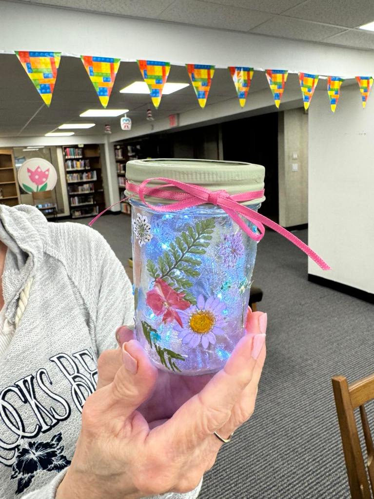 Earlier this week at the library we held our second adult crafting session of the year. The project this time around was a pressed flower jar complete with real lights, a sure way to add a welcomed warm glow to evenings as daylight fades away!