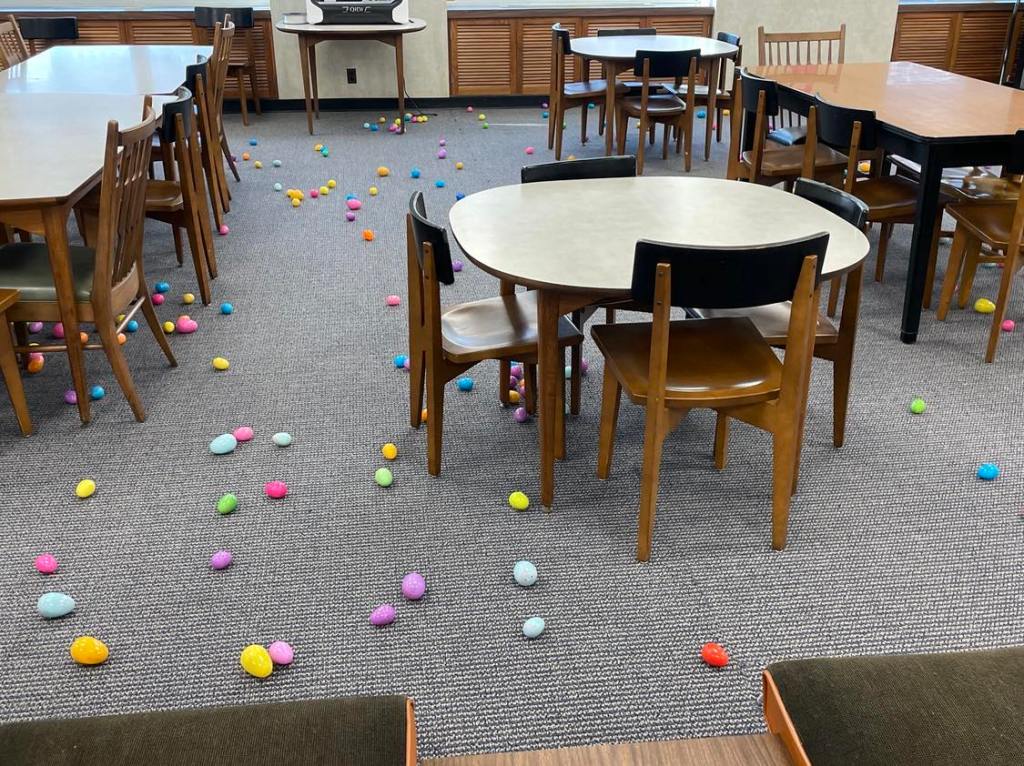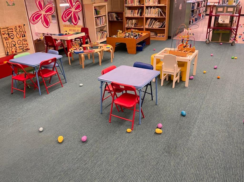We hope everyone had a splendid time at the library’s egg hunt yesterday morning! Eggs were found, lots of candy was enjoyed of course, and everyone got a festive bracelet on the way out.