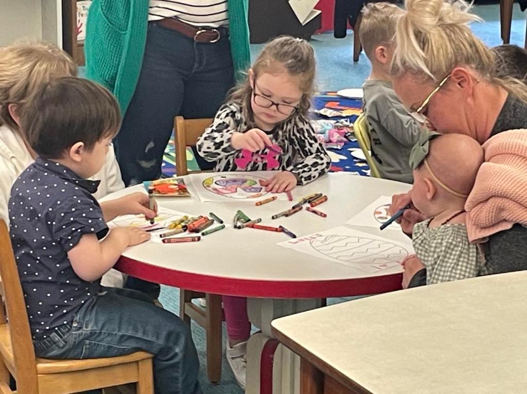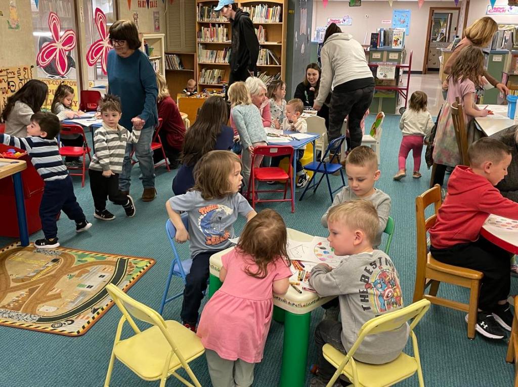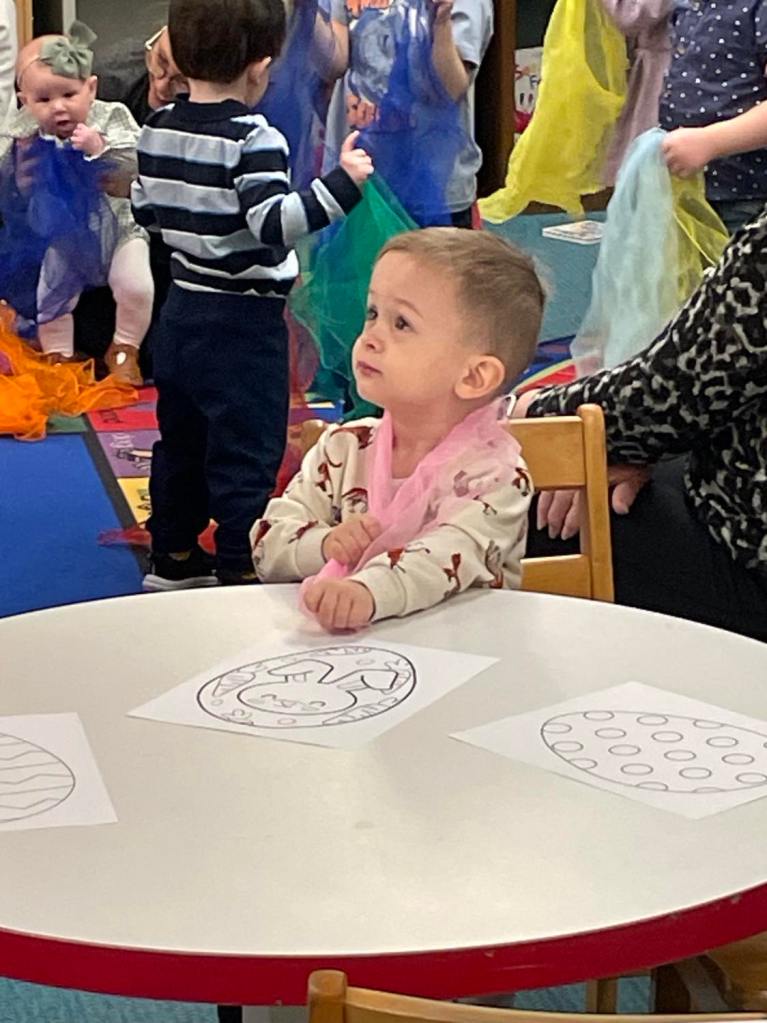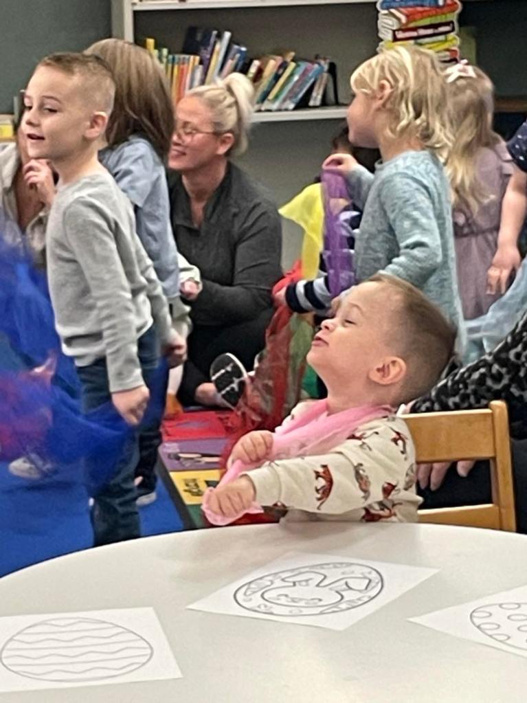 This morning at Preschool Storytime & Movement we read “Bunny Isabel’s Easter Egg Hunt” before singing our regular songs. Later on, everyone got to color a snazzy Easter egg to take home!