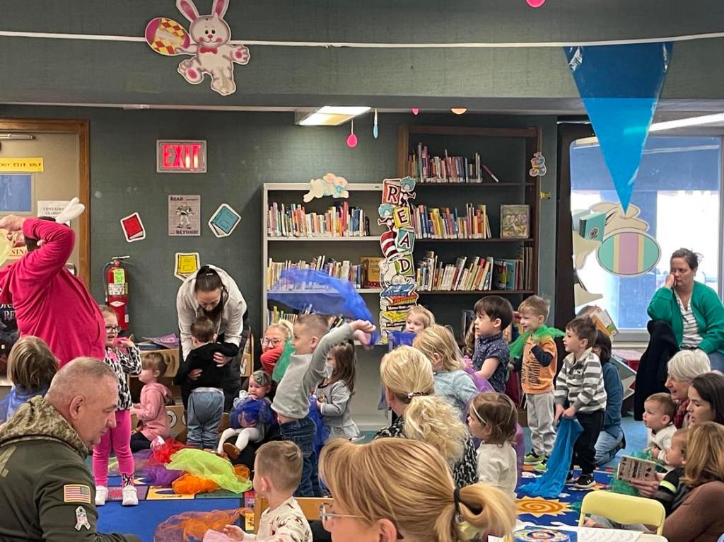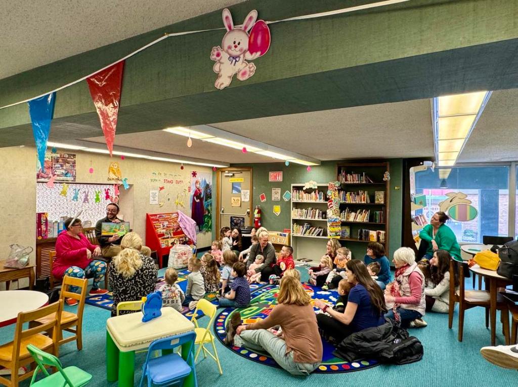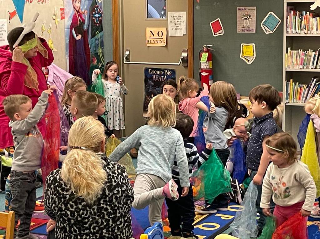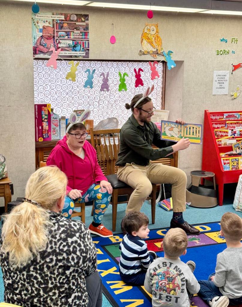 This morning at Preschool Storytime & Movement we read “Bunny Isabel’s Easter Egg Hunt” before singing our regular songs. Later on, everyone got to color a snazzy Easter egg to take home!