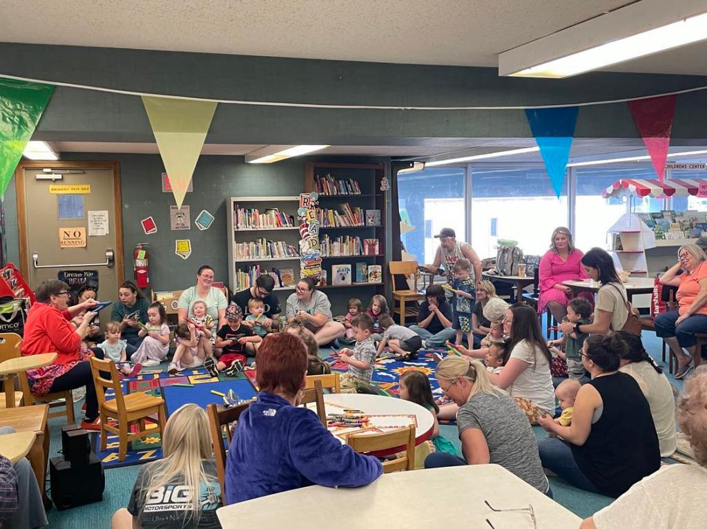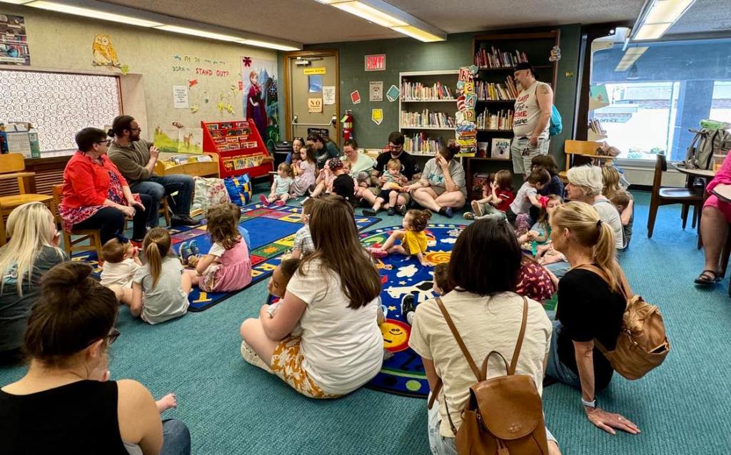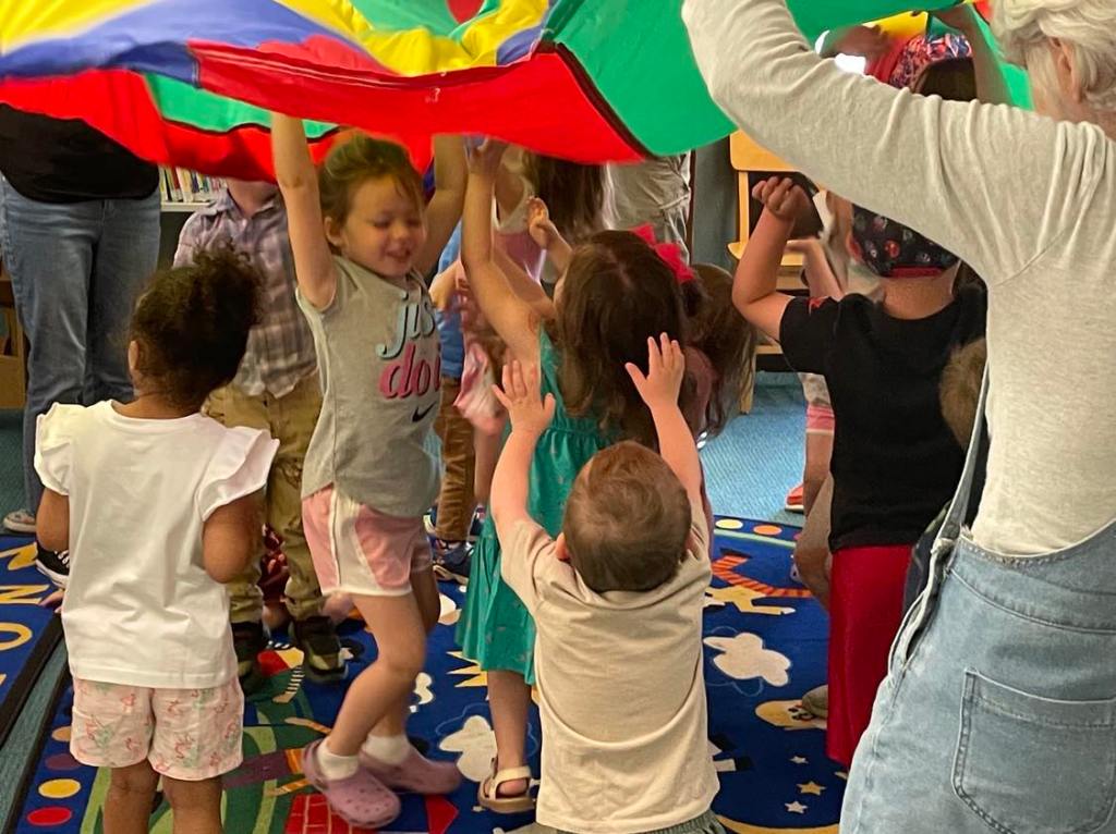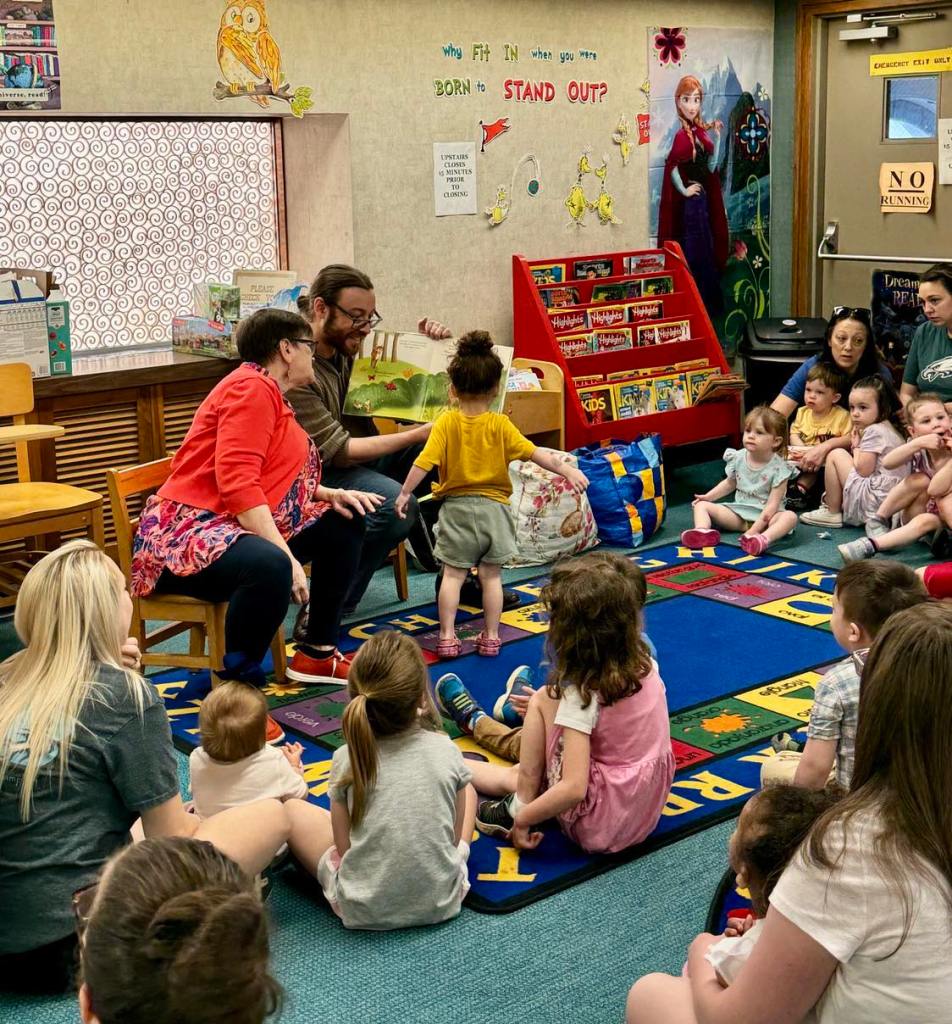 Preschool Storytime & Movement is held every Monday morning at 10 AM upstairs at the library.