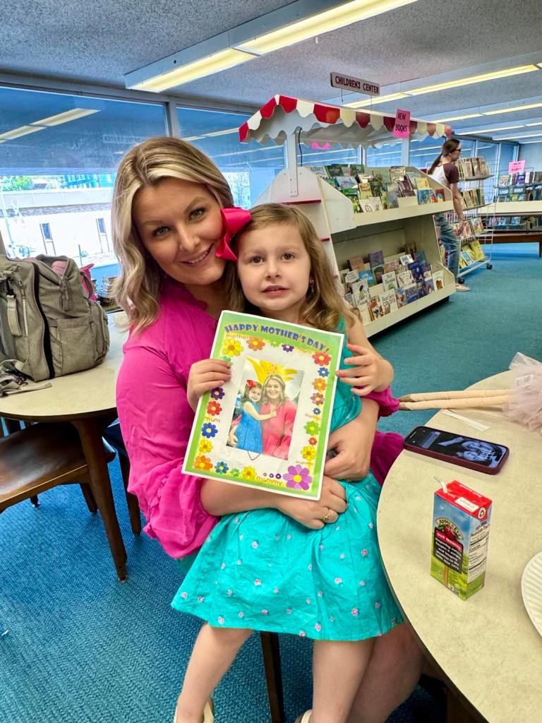 This morning at Preschool Storytime & Movement we read “I Love My Mommy” and after song time had our picture taken with Mom to print and place into a nifty Mother’s Day frame!
