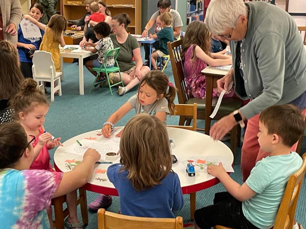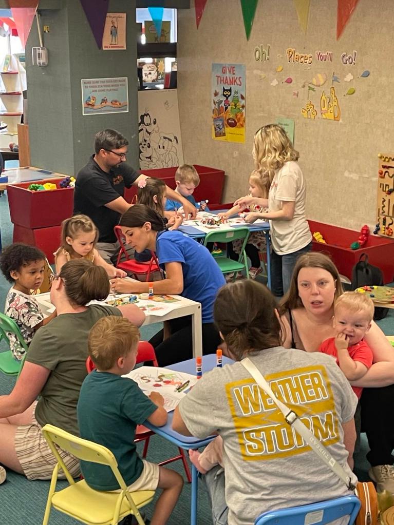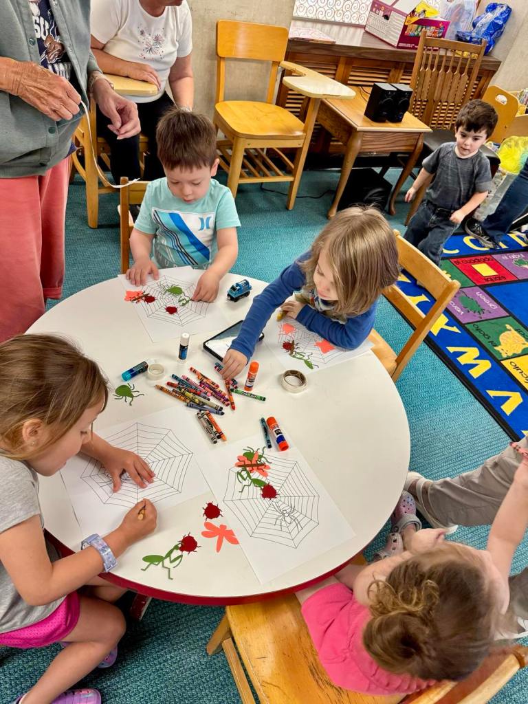 This morning at Preschool Storytime & Movement we read “Miss Spider’s ABC” to brush up on the letters of the alphabet, sang our songs, and later got to assemble a whole web of colorful bug friends just like the ones featured in the story.