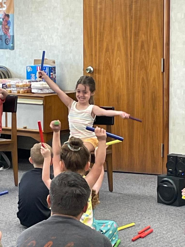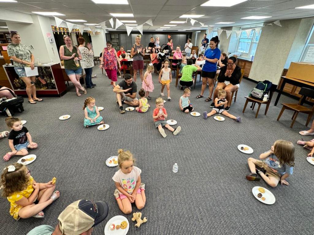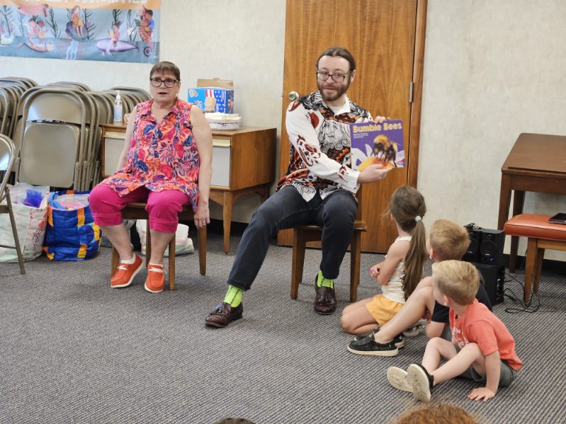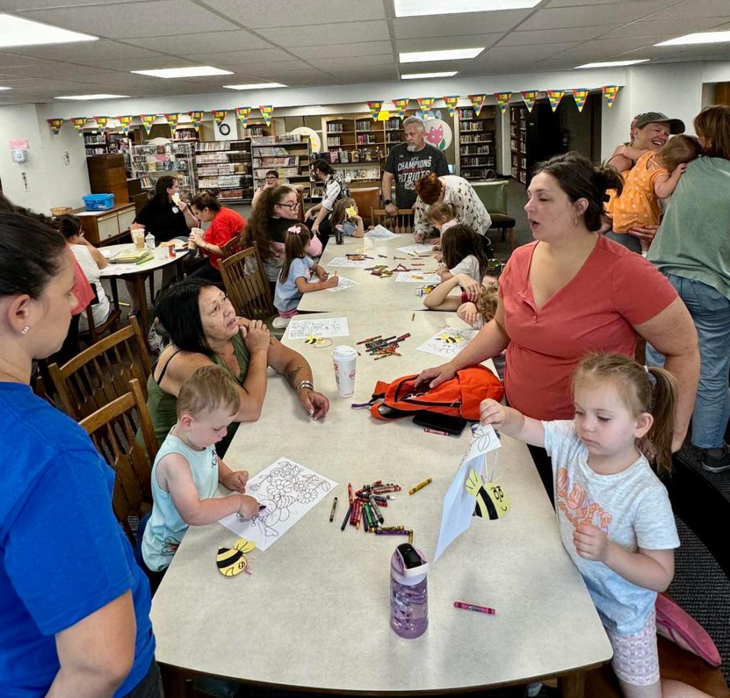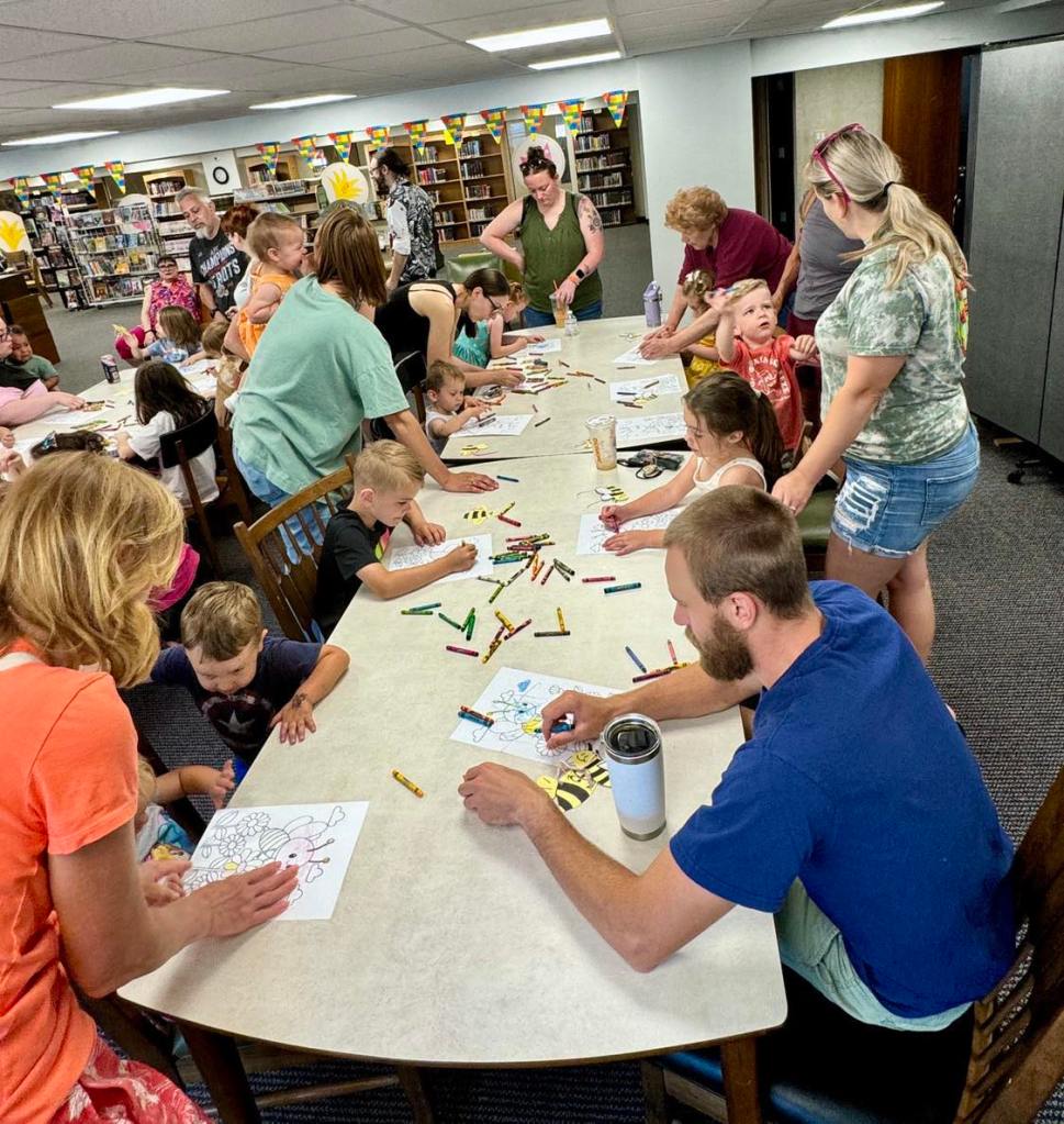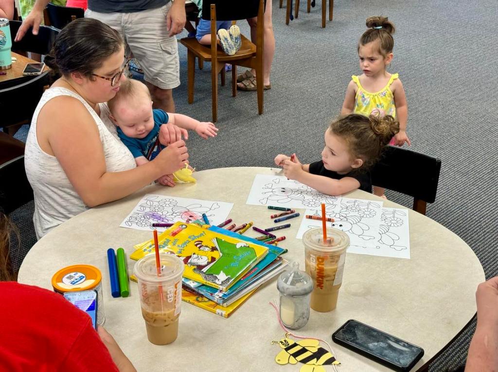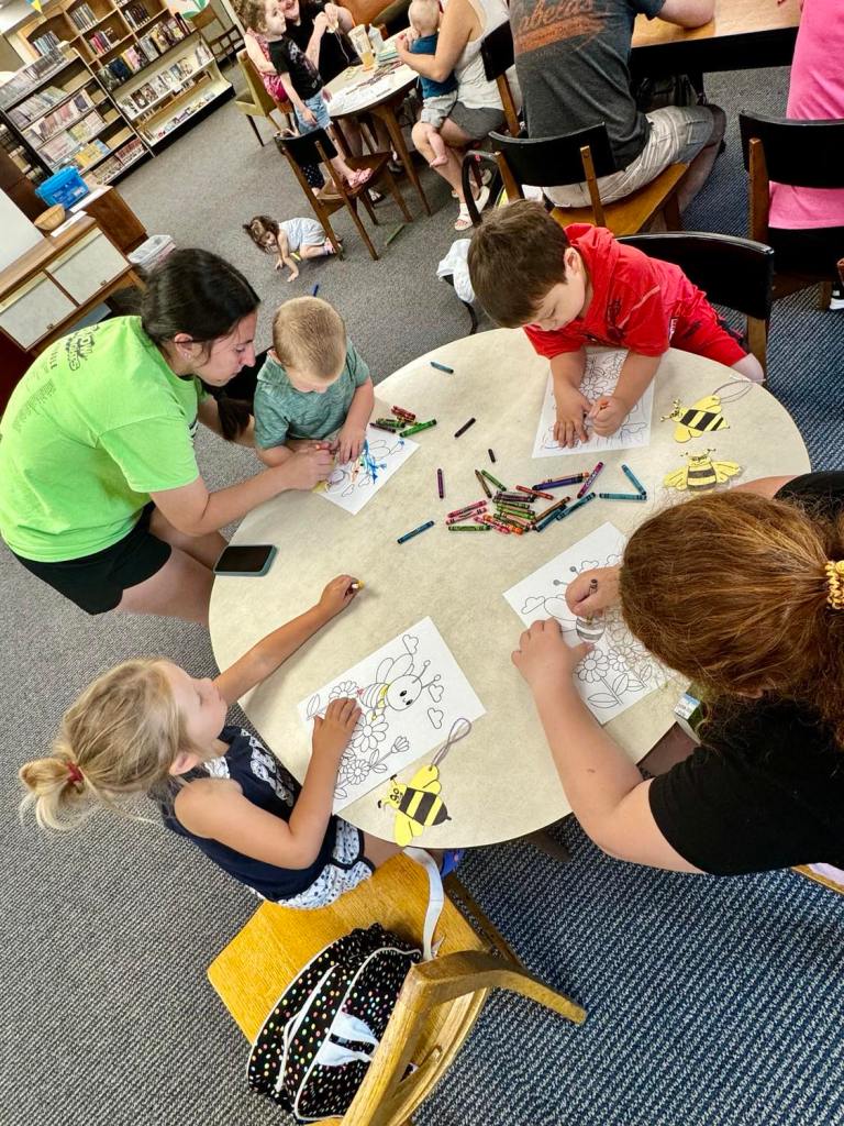 This morning at Preschool Storytime & Movement we read a nonfiction book to learn more about bumblebees, sang our regular songs, did some coloring, made bumblebee ornaments, and then closed with a snack in celebration of multiple special birthdays!