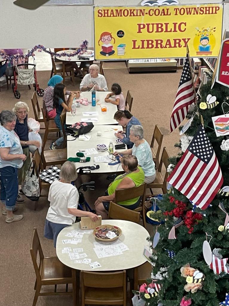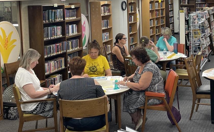 Some of our regular Mahjong folks playing upstairs and our regular crocheters working away downstairs earlier this afternoon. Both groups meet every Wednesday at 1 PM and are equally fantastic options for picking up a new skill while meeting new people!