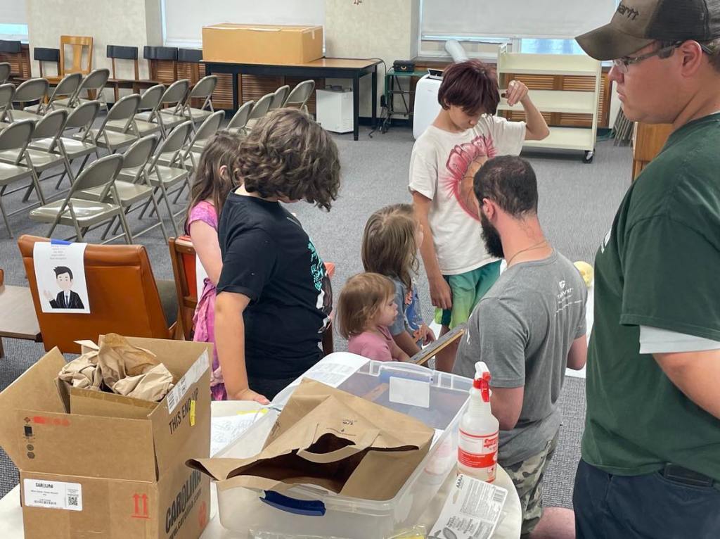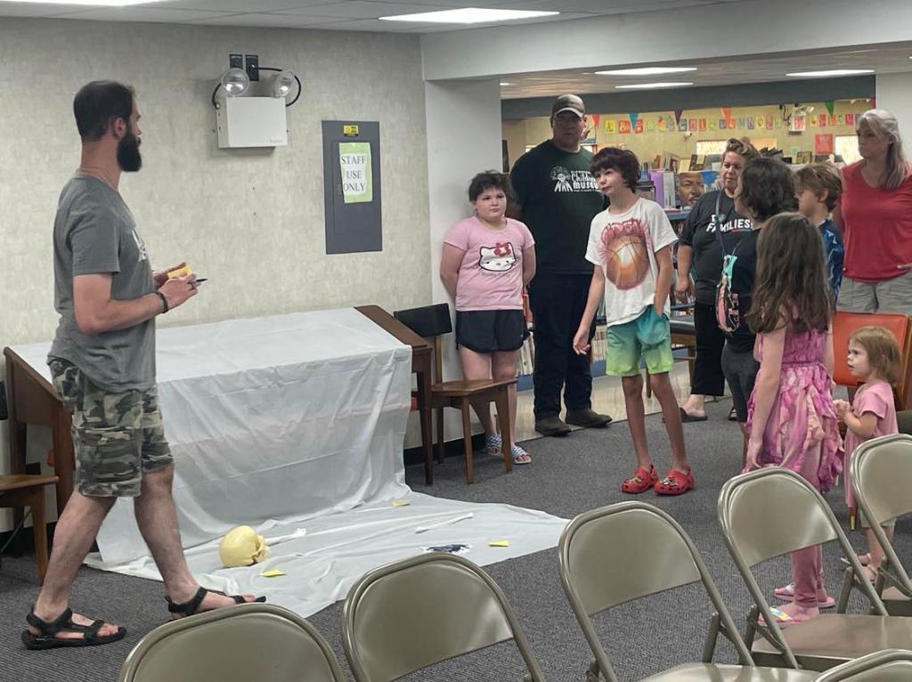 Yesterday evening Bloomsburg Children’s Museum visited us at the library for our monthly STEM adventure! This time around, the focus was on forensic science as we were tasked with solving a “Death in Denver” that had gone unsolved for many years.