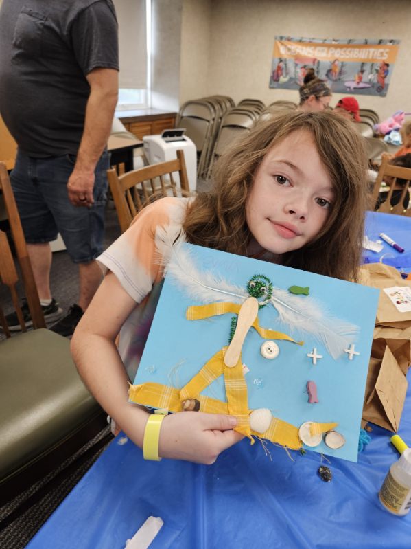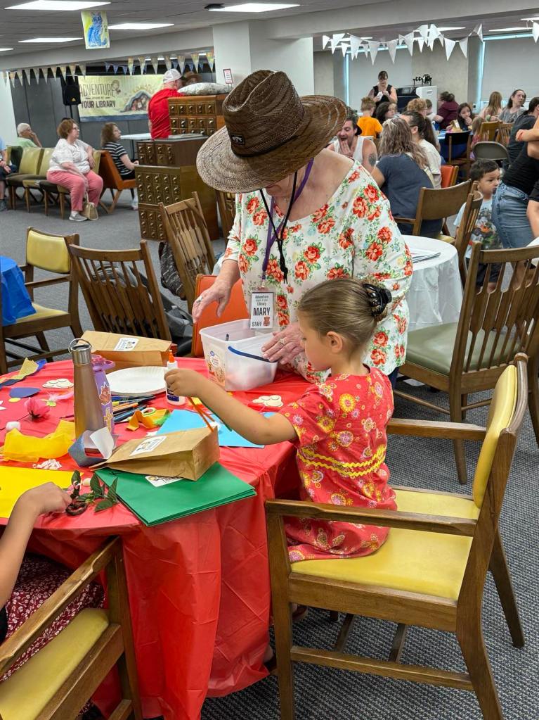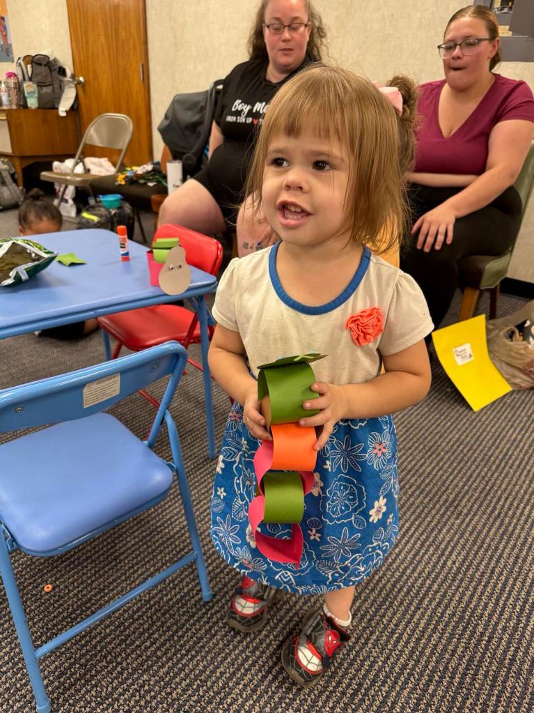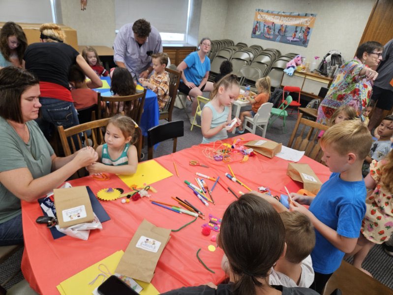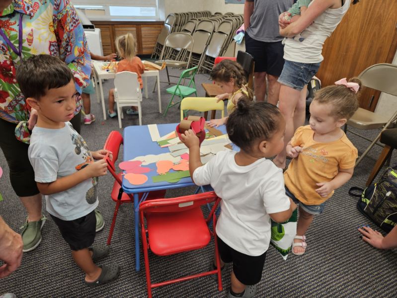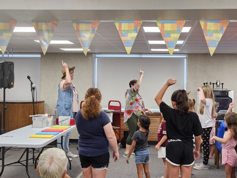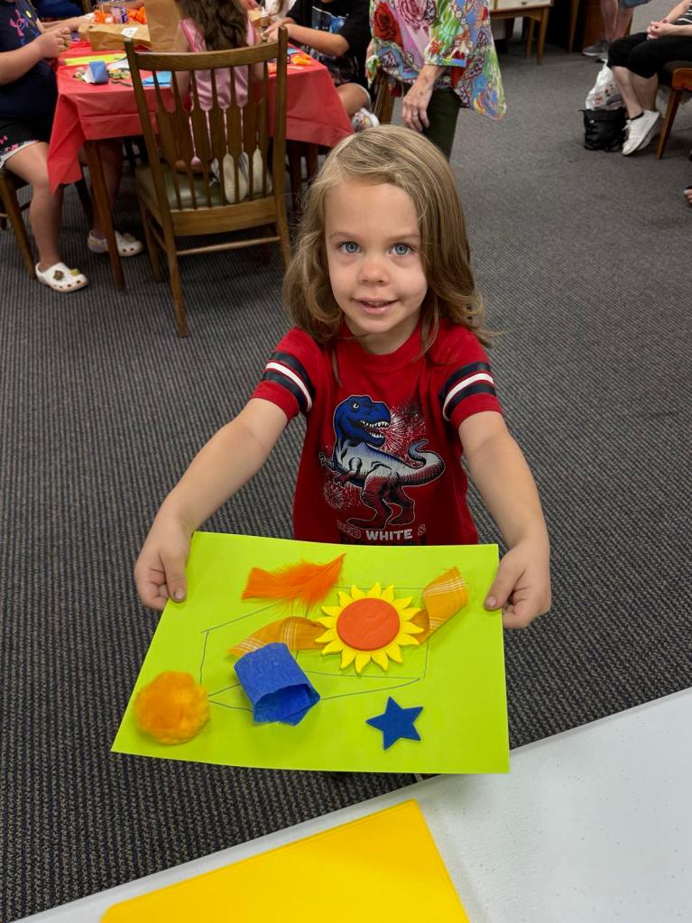 Summer Reading Week 3 is now officially in the books following our journey through the imaginative world of Adventure Crafts! To start off the morning, Ms. Terri led the group through some music and movement to help everyone get into that adventurous spirit and creative zone. Given an individual “mystery bag” filled with randomized crafting supplies to work with, everyone then let their imagination lead the way which resulted in so many unique creations!