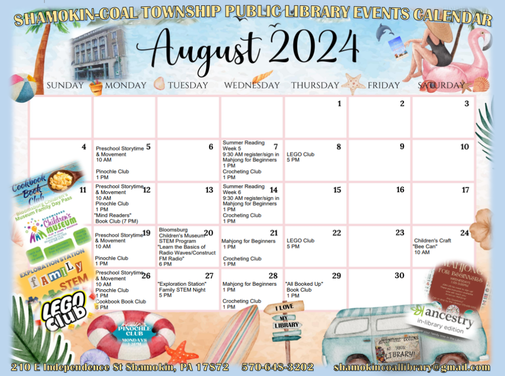 Keep up to date with everything happening at your local library this August and beyond! Event calendars are readily available every month at the front desk along with handouts that include additional information about upcoming programs for children, adults, or the whole family.