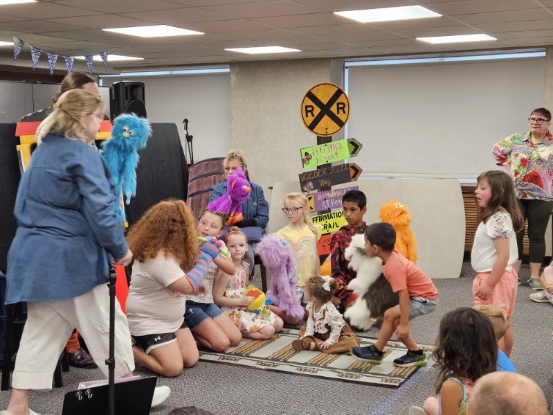 Summer Reading Week 5 is officially in the books following our visit from The Music & Mindfulness Initiative this morning. Through interactive songs and puppets, we all learned a lot about feelings and emotions as we sang, danced, and even got to bring some puppets to life!