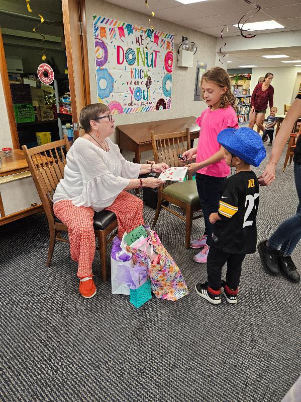 Yesterday morning at Preschool Storytime & Movement we celebrated our very own Mrs. Sickora as she will soon be moving out of the area. Over the last 7 years, Joyce has been a tireless volunteer at Shamokin-Coal Township Public Library and her love of caring for children has been a blessing beyond words for the library and our community.