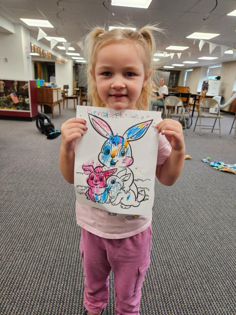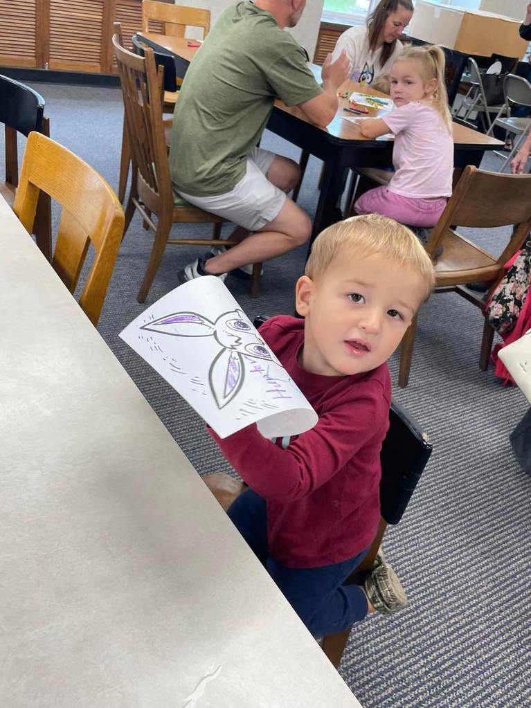 Monday morning at the library we read “Five Little Bunnies Hopping on a Hill” during Preschool Storytime & Movement. After listening to the story and singing our regular songs, everyone got to color a little bunny before enjoying their snack! 🐇🥕