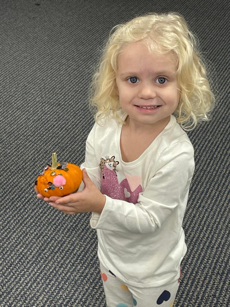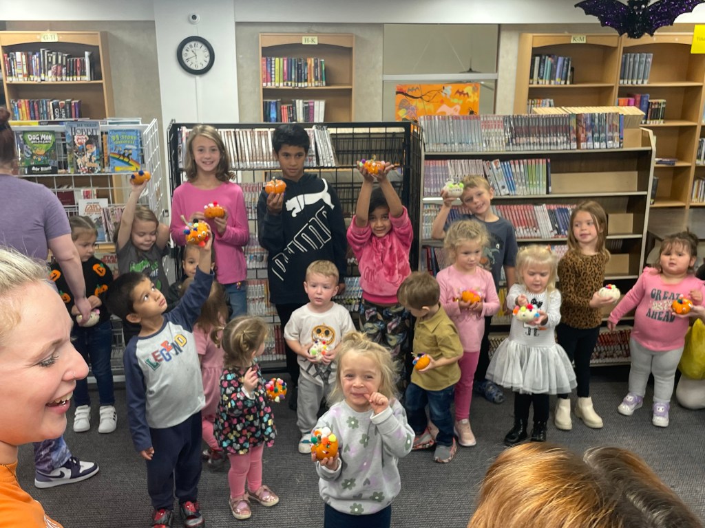 This morning we read “Pete the Cat: Trick or Pete” at Preschool Storytime & Movement since Halloween is only a few short weeks away. Following the story and song time, we decorated cute little pumpkins using a creative combination of colorful jewels, googly eyes, and pom poms! 🎃🎃🎃