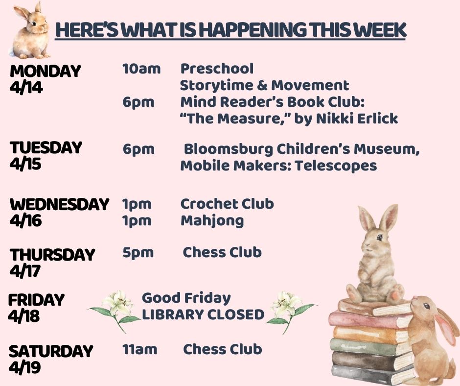 June brings back some fun traditions! We have our Fairy Garden Activity on June 18 for kids ages 3-12. Sign up quickly because space is limited. There is a Children’s Father’s Day craft on June 14 and there is no sign up required. For adults, we are having our Cookbook Book Club two times this month, June 2 and 30. This is a perfect time to join with the themes of Appetizers and Picnic foods. PINOCHLE is back on the 1st and 3rd Tuesdays in June. Check out all the other happenings and make sure to grab a book or two for some summer reading!