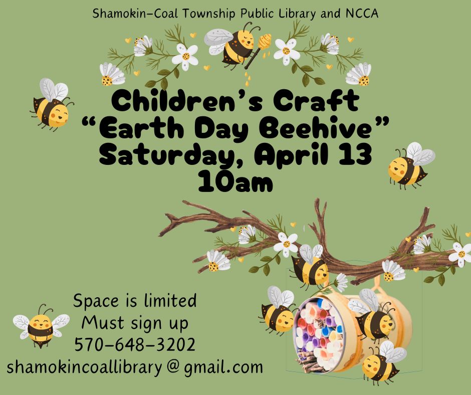 Join us at the library next Saturday, April 13 at 10 AM for an “Earth Day Beehive” children’s craft! Working with recycled materials, we’ll be constructing mason bee homes and then of course decorating them as well. Space is limited and sign-up is required, so be sure to claim a spot as soon as you can by either stopping by or reaching out over the phone or through email!
